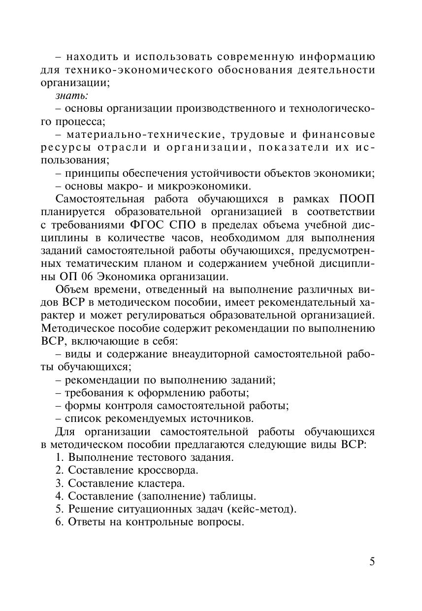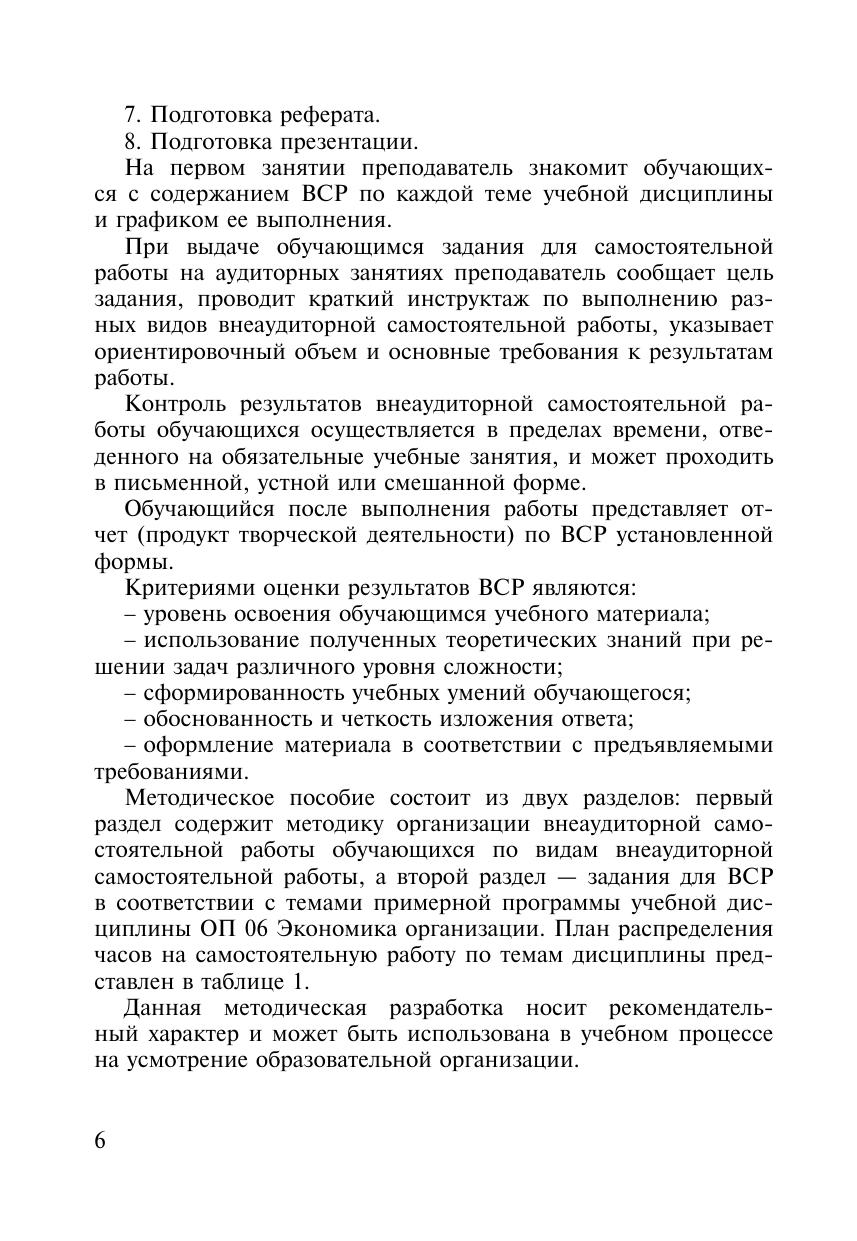 Методическое пособие Организация самостоятельной работы для обучающихся очной формы обучения образовательных организаций среднего профессионального образования ОП 06 Экономика организации