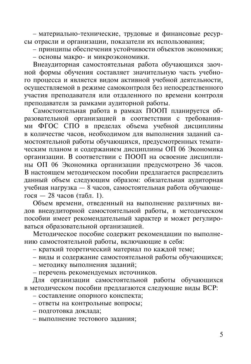 Методическое пособие Организация самостоятельной работы для обучающихся заочной формы обучения образовательных организаций среднего профессионального образования ОП 06 Экономика организации