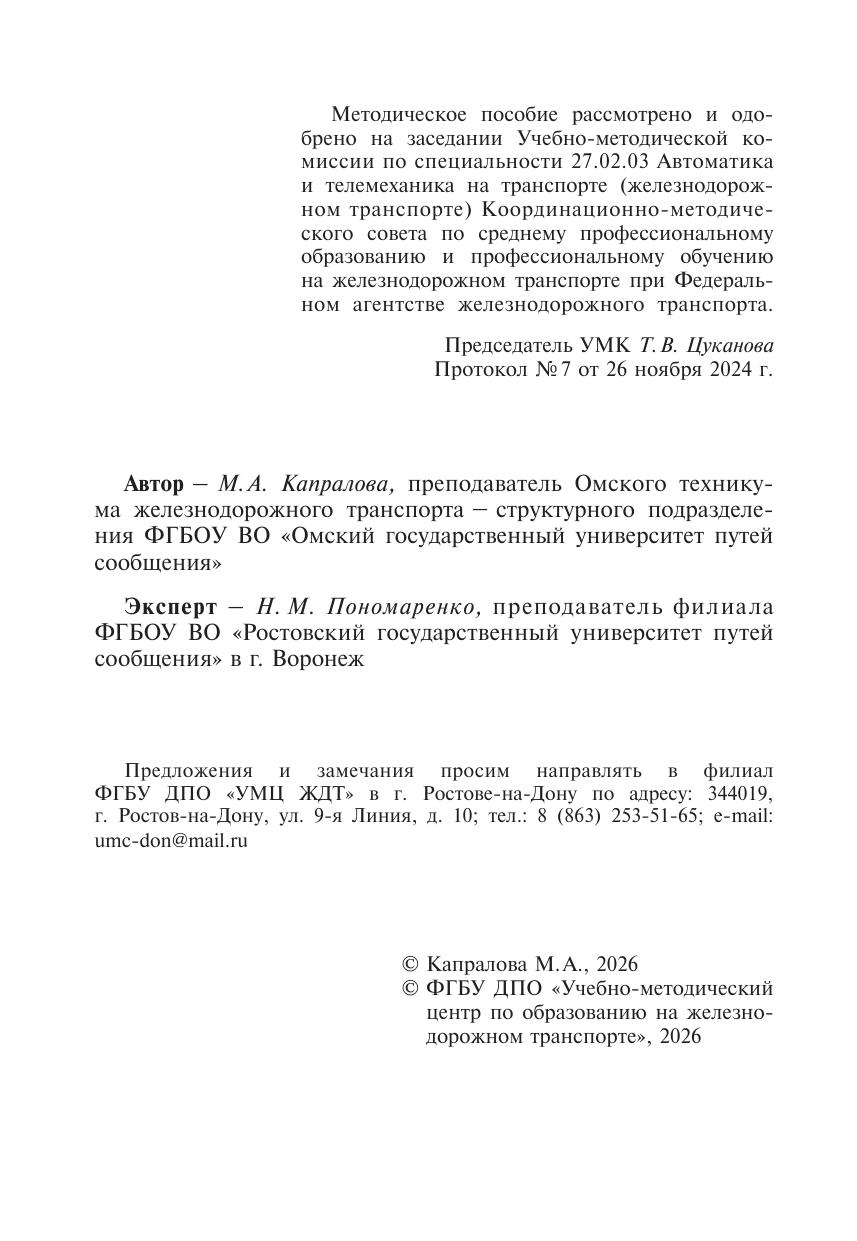 Капралова, М.А. Методическое пособие Организация самостоятельной работы для обучающихся заочной формы обучения образовательных организаций среднего профессионального образования ОП 03 Общий курс железных дорог : методическое пособие / М. А. Капралова. — Москва : УМЦ ЖДТ, 2026. — 100 с. — Текст : электронный // УМЦ ЖДТ : электронная библиотека. — URL: https://umczdt.ru/books/1236/300690/ (дата обращения 30.04.2026). — Режим доступа: по подписке.