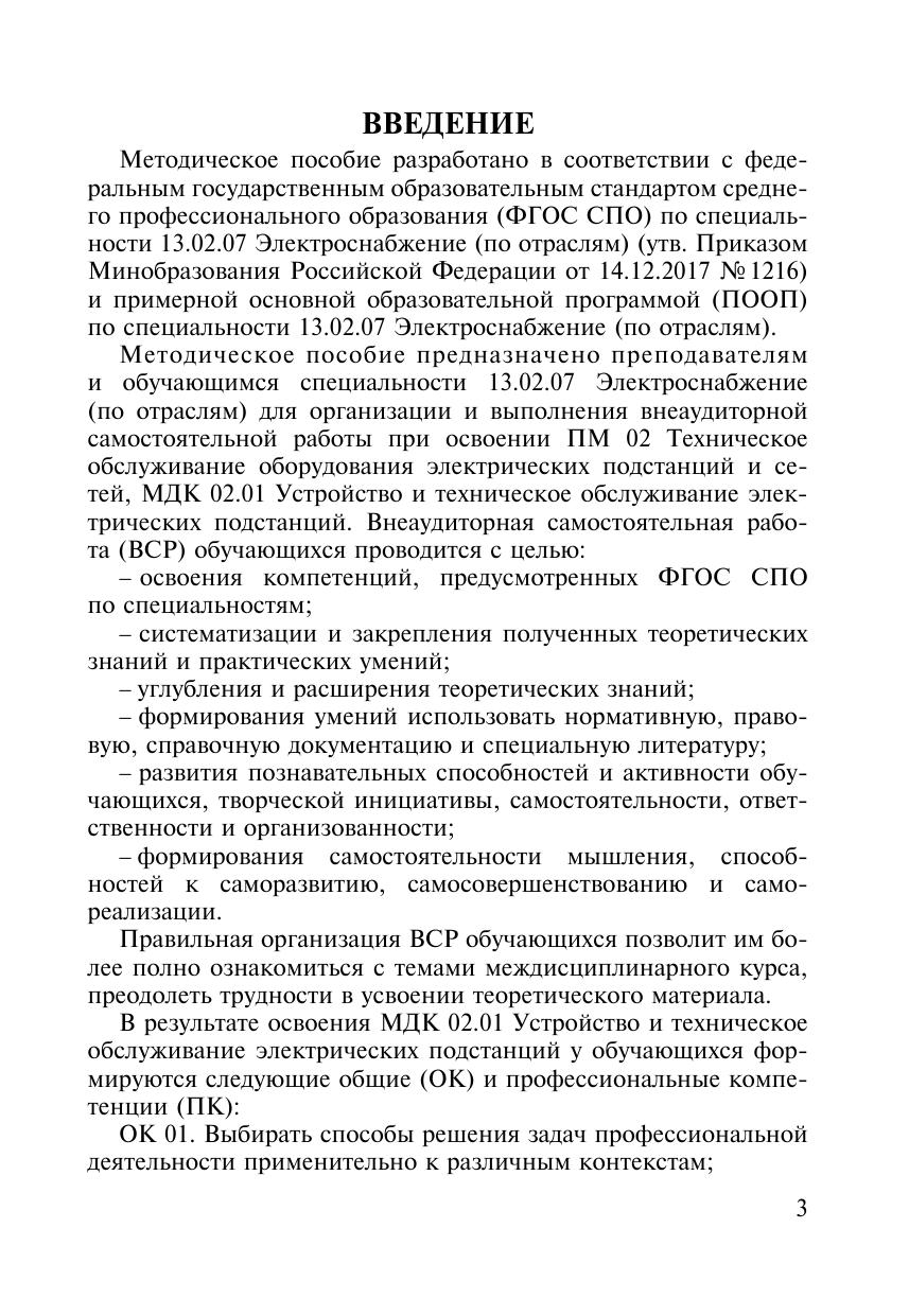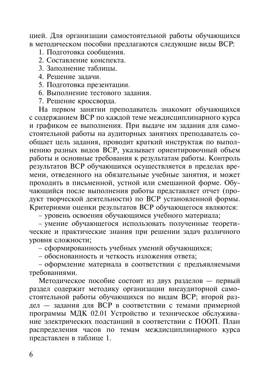 Методическое пособие Организация самостоятельной работы для обучающихся очной формы обучения образовательных организаций среднего профессионального образования МДК 02.01 Устройство и техническое обслуживание электрических подстанций