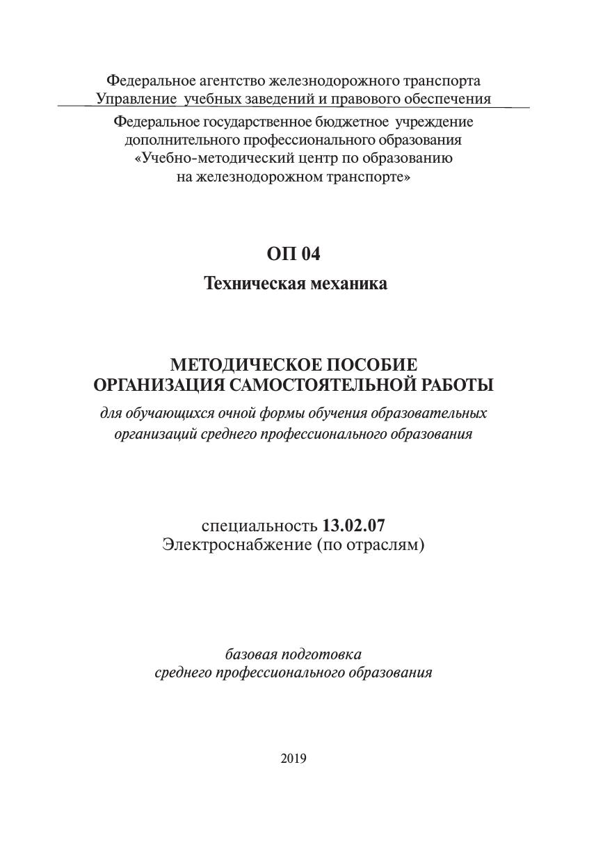 ОП 04 Техническая механика. МП "Организация самостоятельной работы"