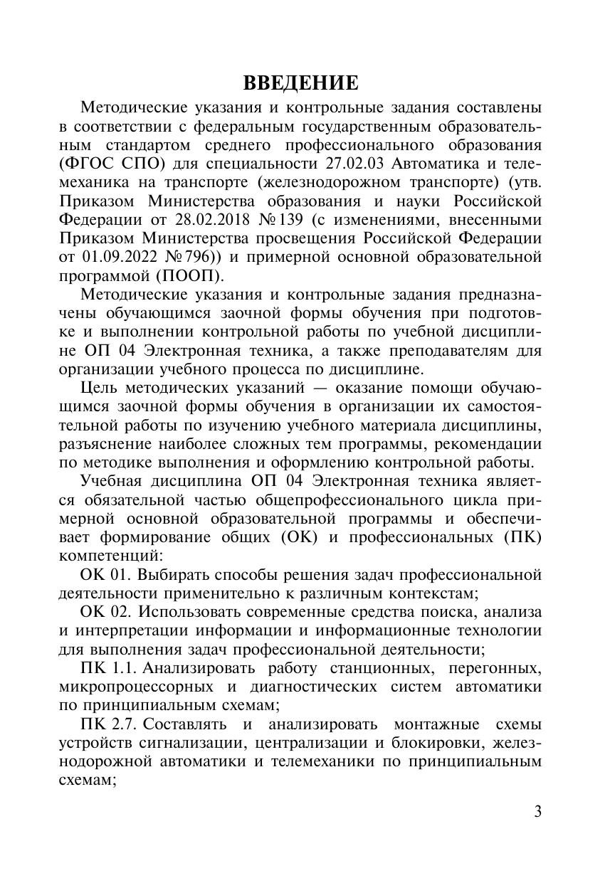 Методические указания разработаны в соответствии с ФГОС СПО и ПООП для специальности 27.02.03 Автоматика и телемеханика на транспорте. Предназначены обучающимся заочной формы обучения при подготовке и выполнении контрольной работы по ОП 04 Электронная техника, а также преподавателям для организации учебного процесса.