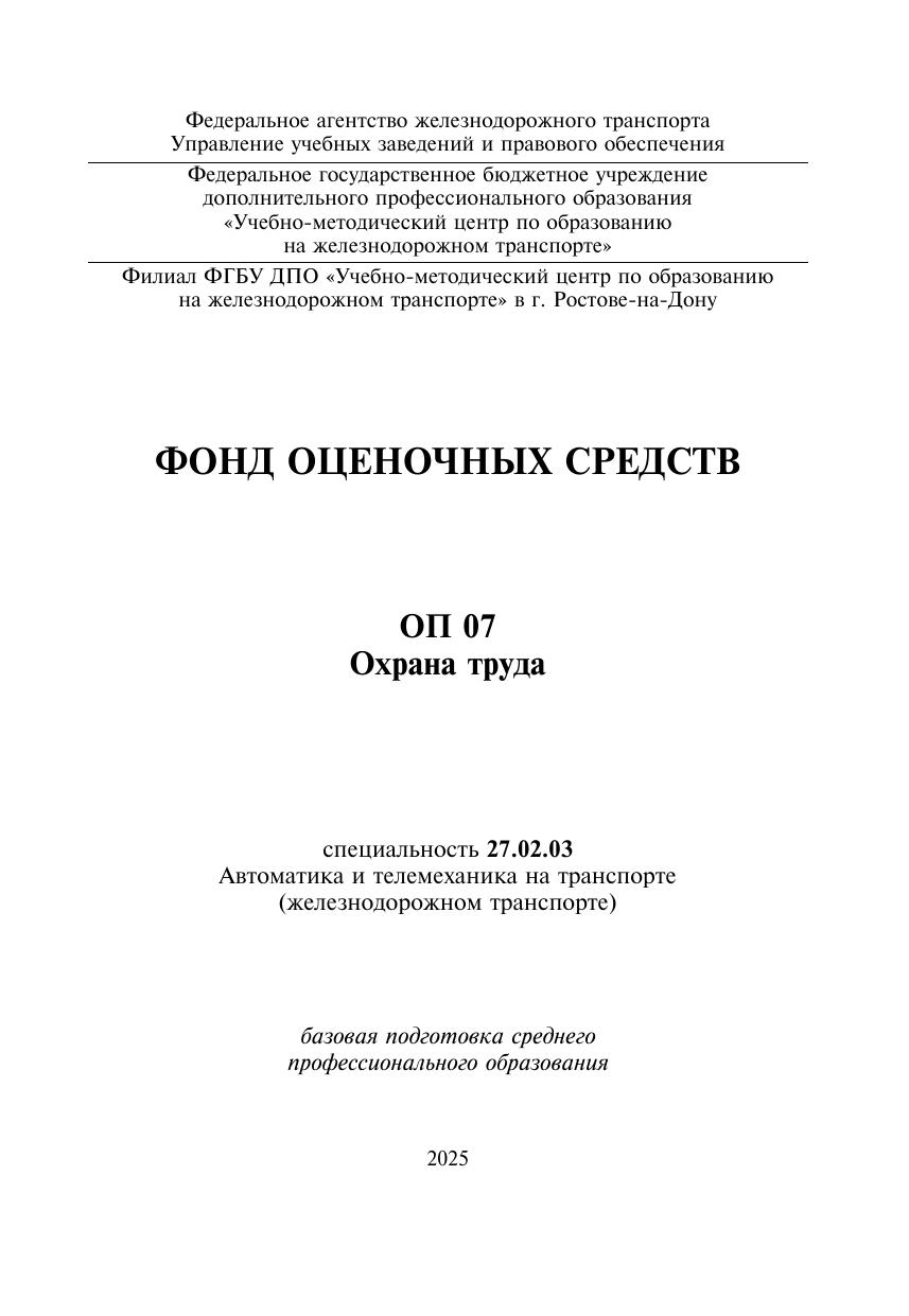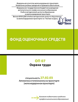 Колоскова, Е.В. Фонд оценочных средств ОП 07 Охрана труда : фонд оценочных средств / Е. В. Колоскова. — Москва : УМЦ ЖДТ, 2025. — 76 с. — Текст : электронный // УМЦ ЖДТ : электронная библиотека. — URL: https://umczdt.ru/books/1242/296589/ (дата обращения 08.11.2025). — Режим доступа: по подписке.