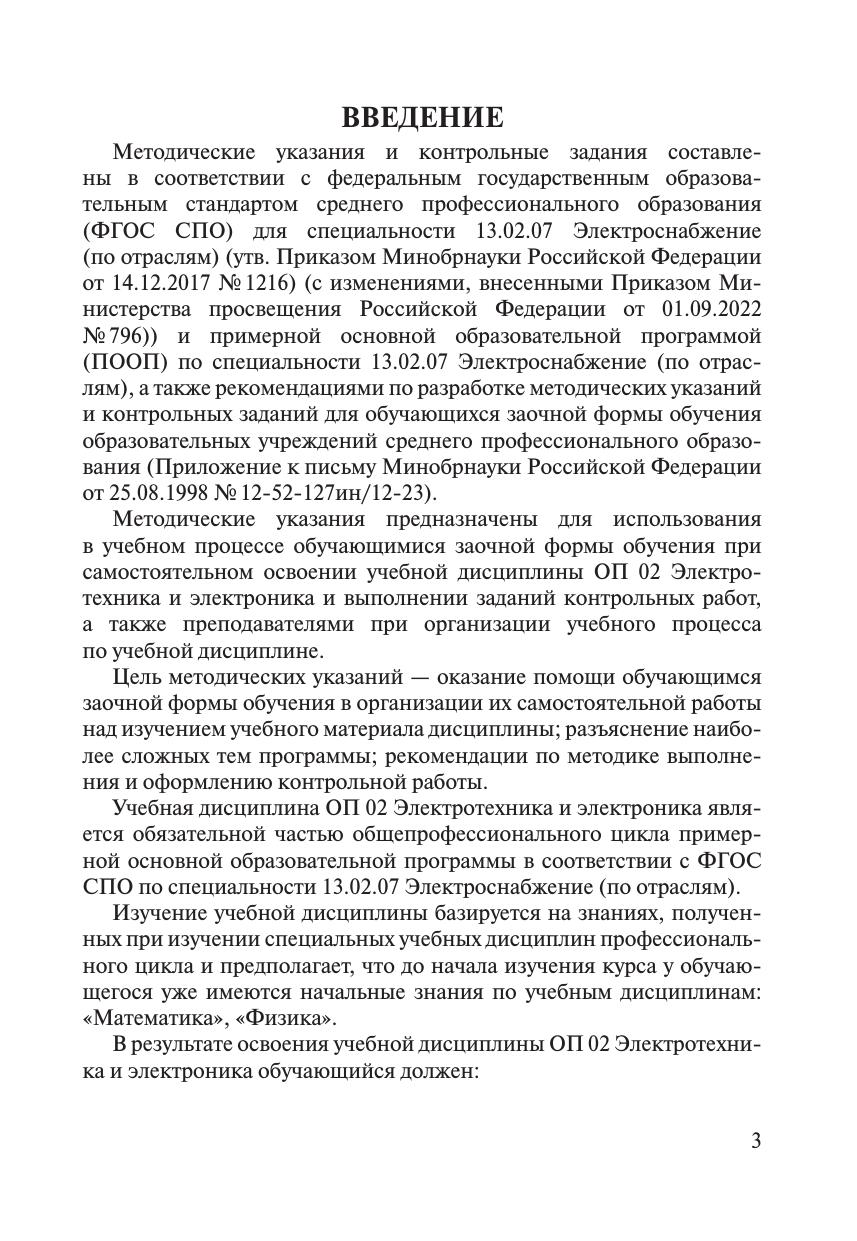 Методические указания и контрольные задания для обучающихся заочной формы обучения образовательных организаций среднего профессионального образования ОП 02 Электротехника и электроника