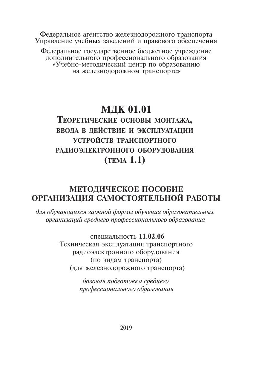 МДК 01.01 Теоретические основы монтажа, ввода в действие и эксплуатации устройств транспортного радиоэлектронного оборудования (тема 1.1)