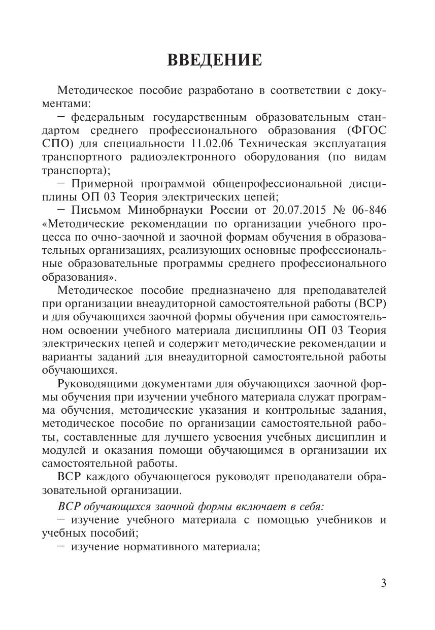 Методическое пособие предназначено для преподавателей при организации внеаудиторной самостоятельной работы (ВСР) и для обучающихся заочной формы обучения при самостоятельном освоении учебного материала дисциплины ОП 03 Теория электрических цепей и содержит методические рекомендации и варианты заданий для внеаудиторной самостоятельной работы обучающихся