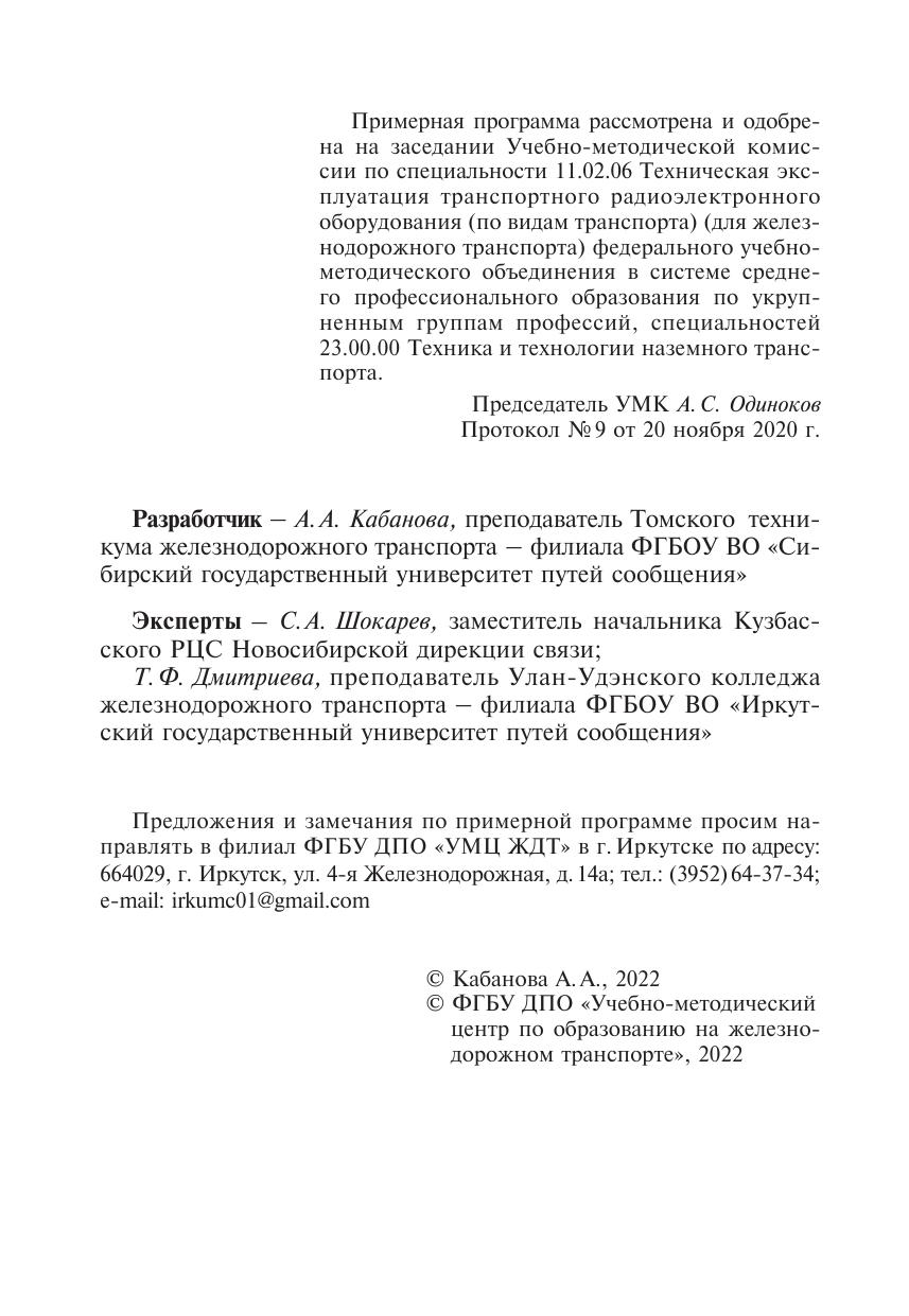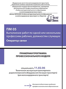 Кабанова, А.А. Примерная программа профессионального модуля ПМ О5 Выполнение работ по одной или нескольким профессиям рабочих, должностям служащих Оператор связи : / А. А. Кабанова. — Москва : УМЦ ЖДТ, 2022. — 32 с. — Текст : электронный // УМЦ ЖДТ : электронная библиотека. — URL: https://umczdt.ru/books/1251/260518/ (дата обращения 08.02.2026). — Режим доступа: по подписке.