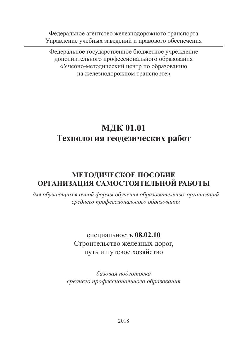 Зеленская, Л.И. МДК 01.01 Технология геодезических работ. МП "Организация самостоятельной работы" : методическое пособие / Л. И. Зеленская. — Москва : ФГБУ ДПО «Учебно-методический центр по образованию на железнодорожном транспорте», 2018. — 56 с. — Текст : электронный // УМЦ ЖДТ : электронная библиотека. — URL: https://umczdt.ru/books/1257/223437/ (дата обращения 15.04.2026). — Режим доступа: по подписке.