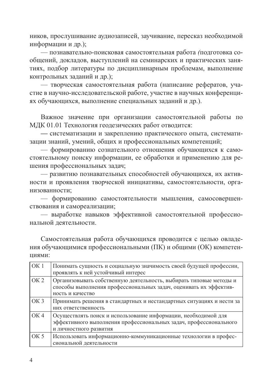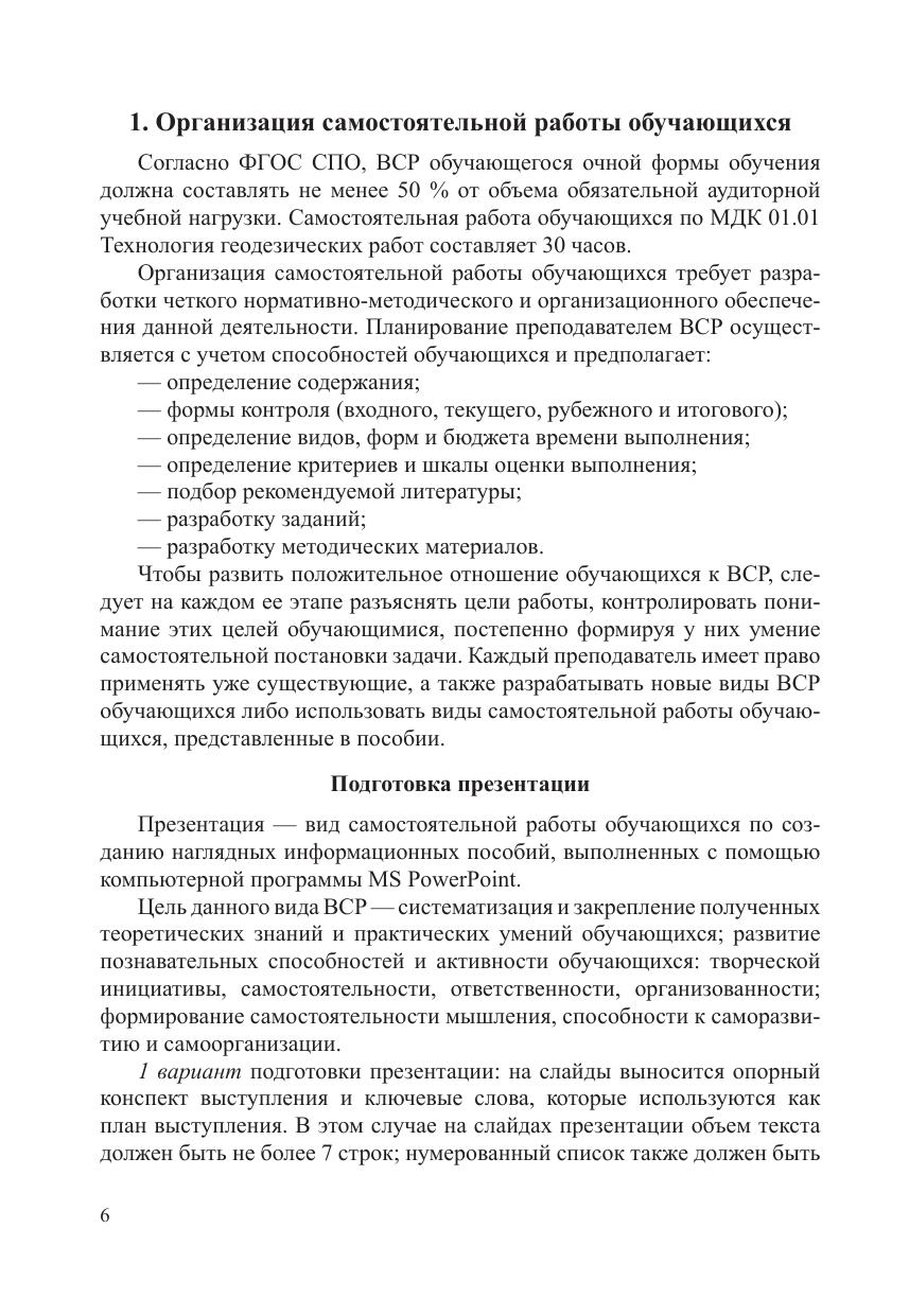 МДК 01.01 Технология геодезических работ. МП "Организация самостоятельной работы"