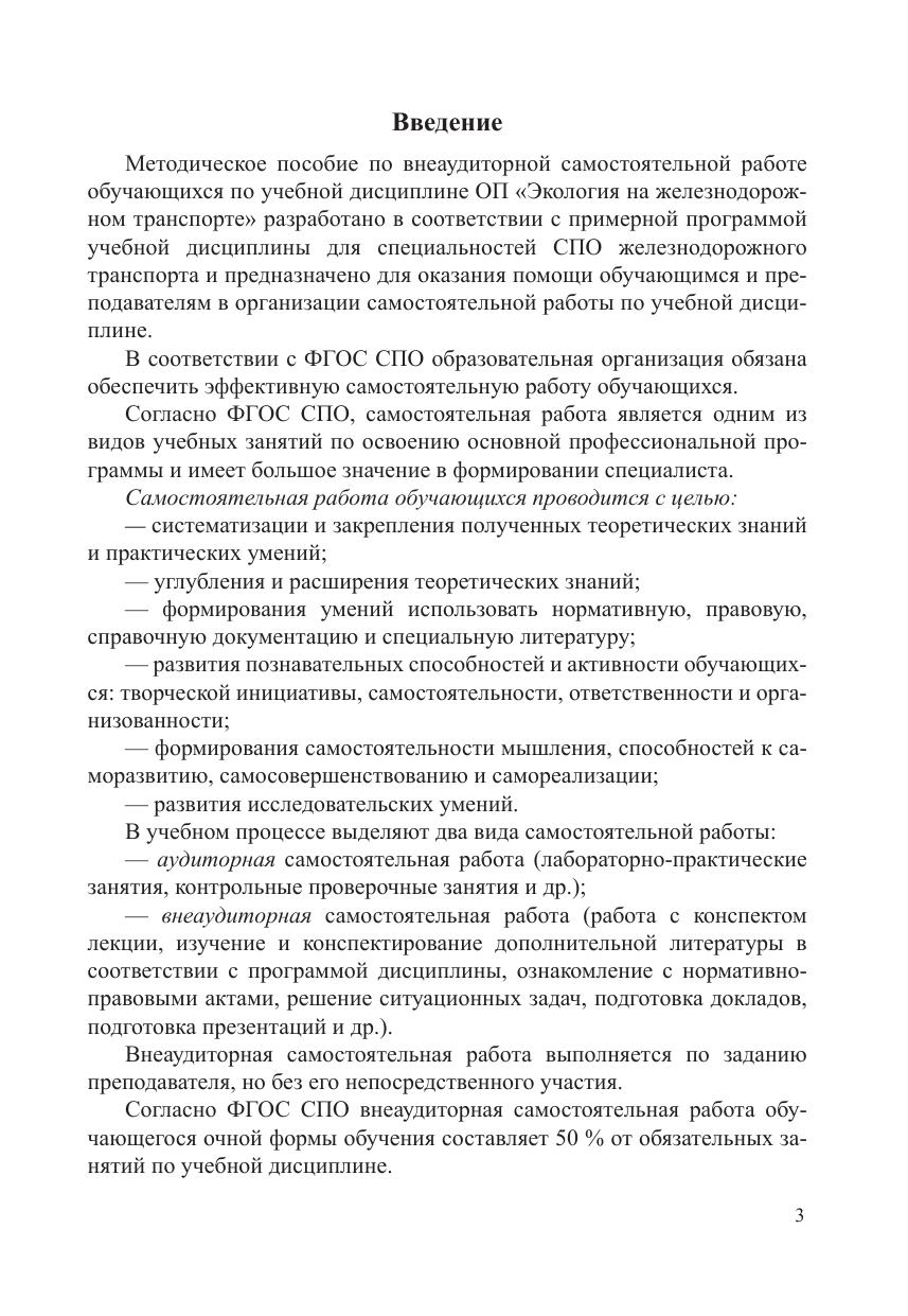 Методическое пособие по внеаудиторной самостоятельной работе обучающихся по учебной дисциплине ОП «Экология на железнодорожном транспорте» разработано в соответствии с примерной программой учебной дисциплины для специальностей СПО железнодорожного транспорта и предназначено для оказания помощи обучающимся и преподавателям в организации самостоятельной работы по учебной дисциплине.