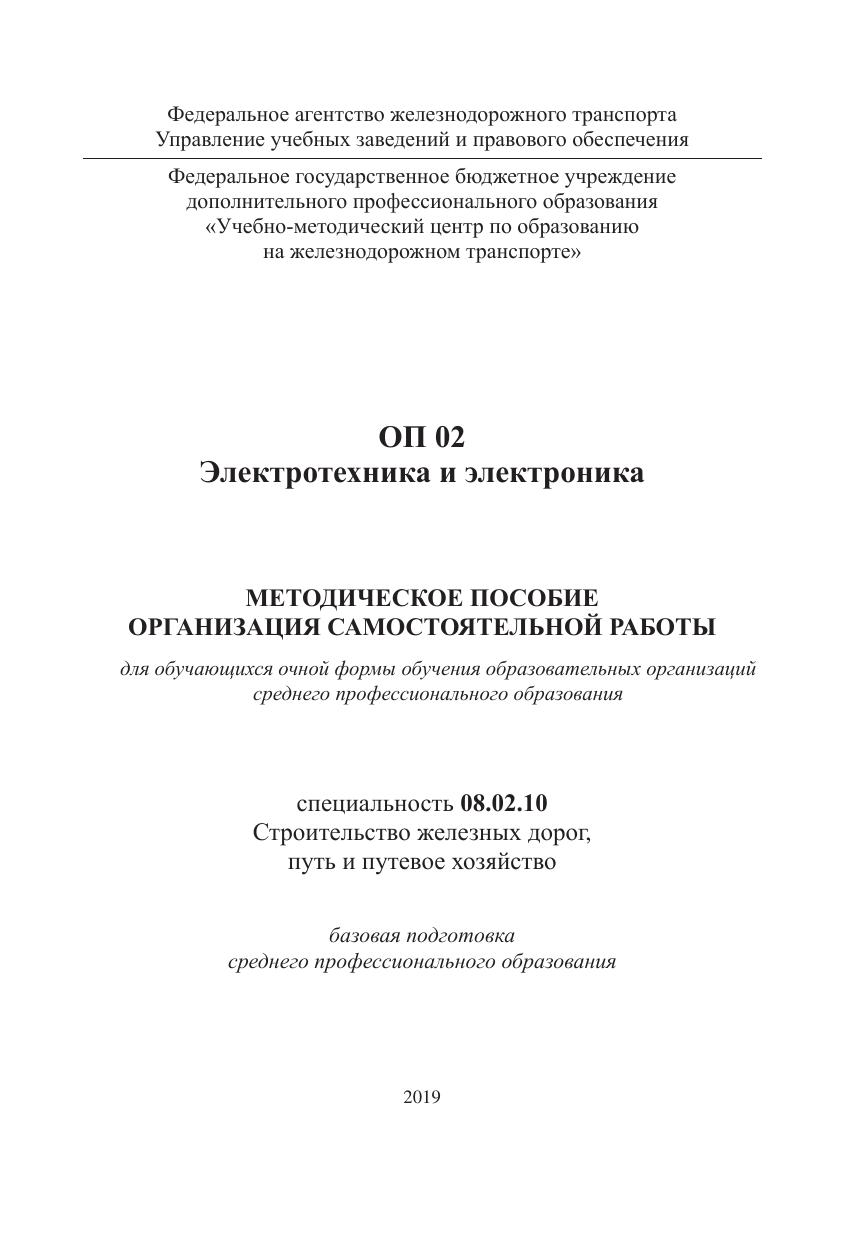 Дедова , О.А. ОП 02 Электротехника и электроника. МП "Организация самостоятельной работы" : / О. А. Дедова . — : , 2019. — 64 с. — Текст : электронный // УМЦ ЖДТ : электронная библиотека. — URL: https://umczdt.ru/books/1257/232124/ (дата обращения 19.04.2026). — Режим доступа: по подписке.