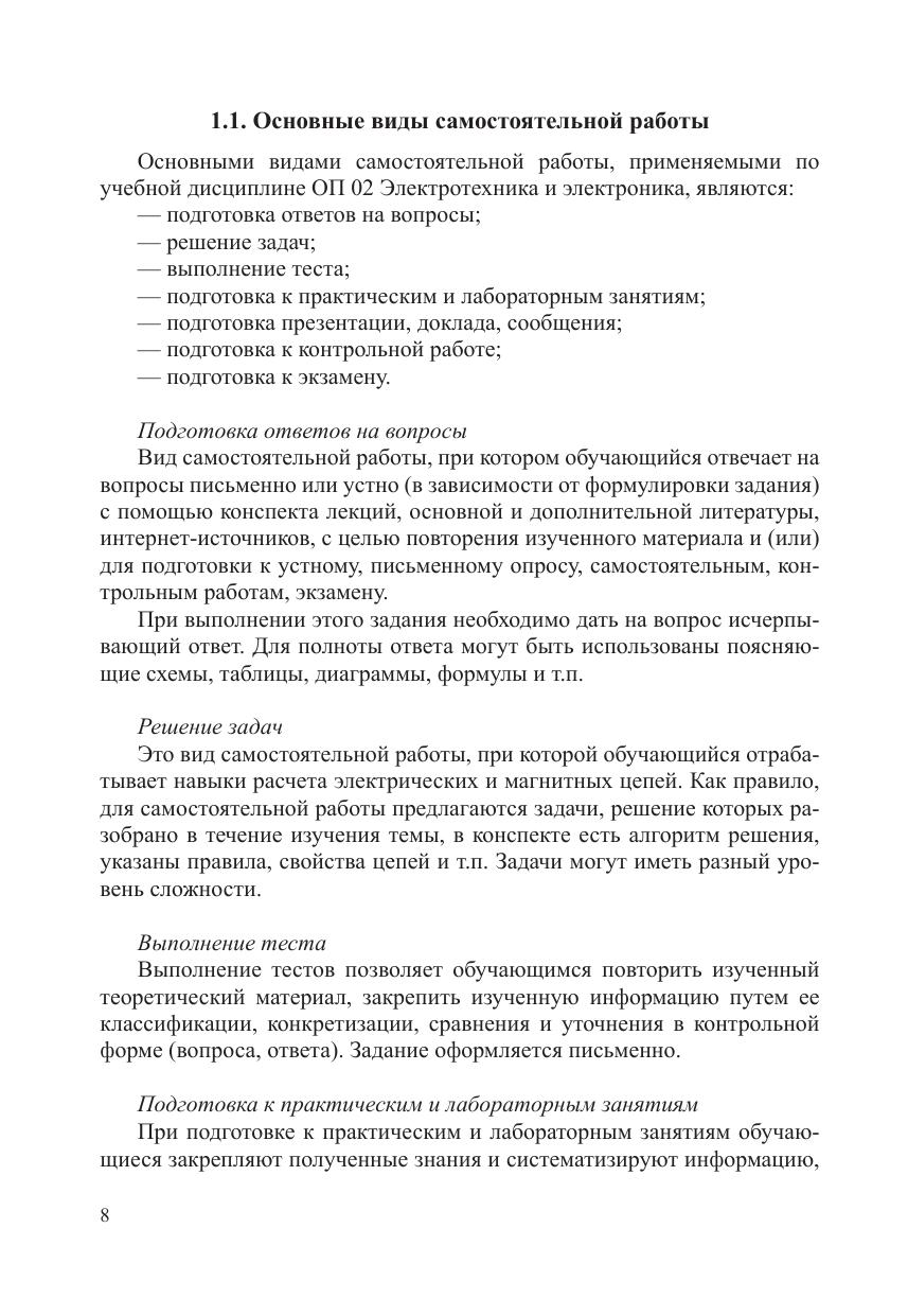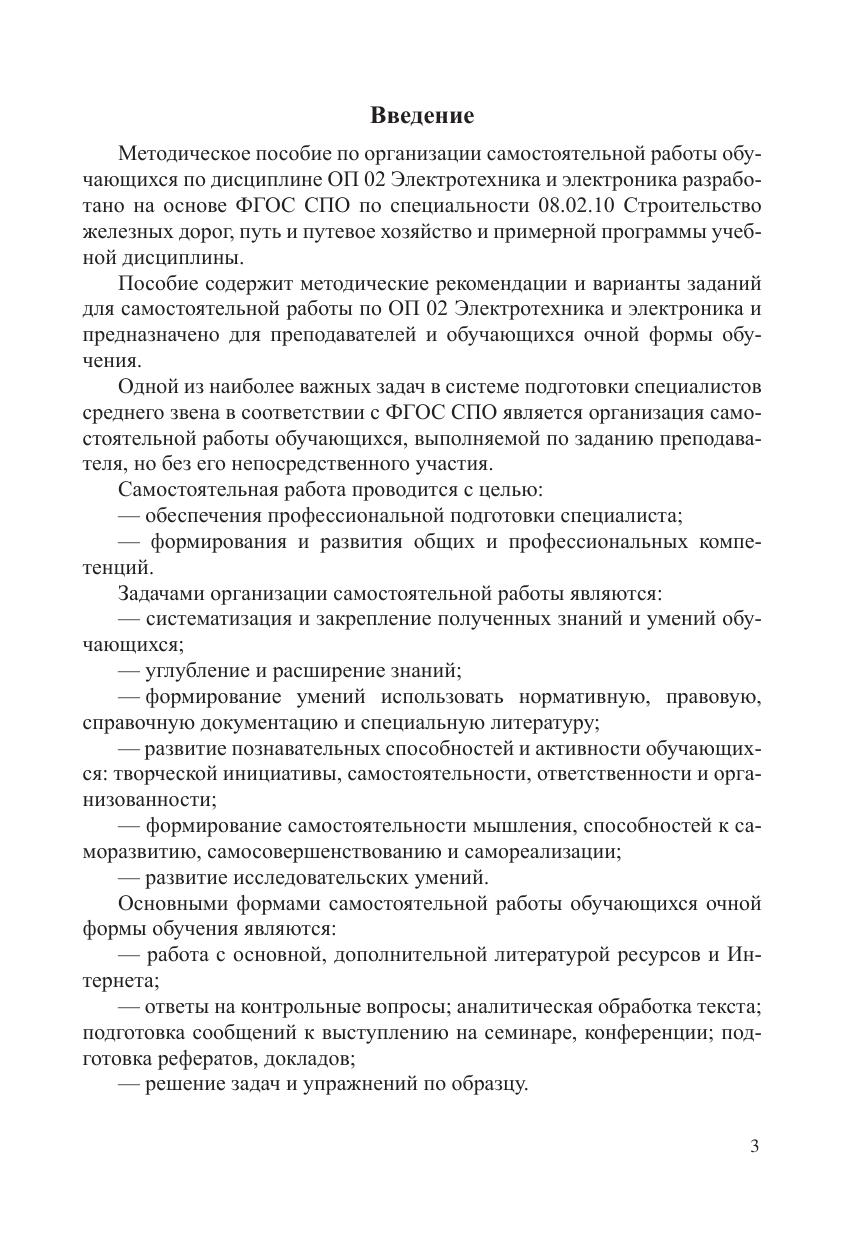 Пособие содержит методические рекомендации и варианты заданий для самостоятельной работы по ОП 02 Электротехника и электроника и предназначено для преподавателей и обучающихся очной формы обучения.