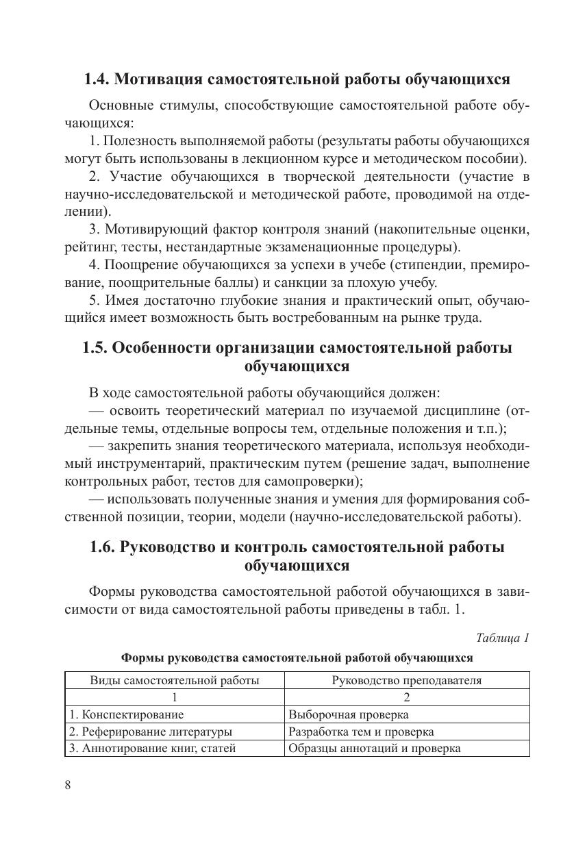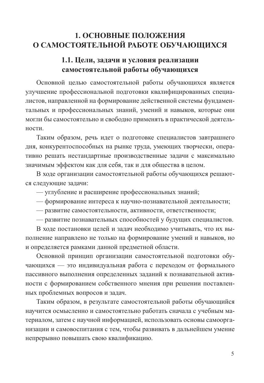 Одной из целей профессиональной подготовки специалиста является необходимость предоставить ему прочные фундаментальные знания, на основе которых он смог бы самостоятельно обучаться в нужном направлении.Самостоятельная работа представляет собой независимое инициативное приобретение обучающимся знаний и умений, в процессе которого он может создавать свои методы познания, интуитивно подбирать, комбинировать известные и апробированные способы усвоения материала.