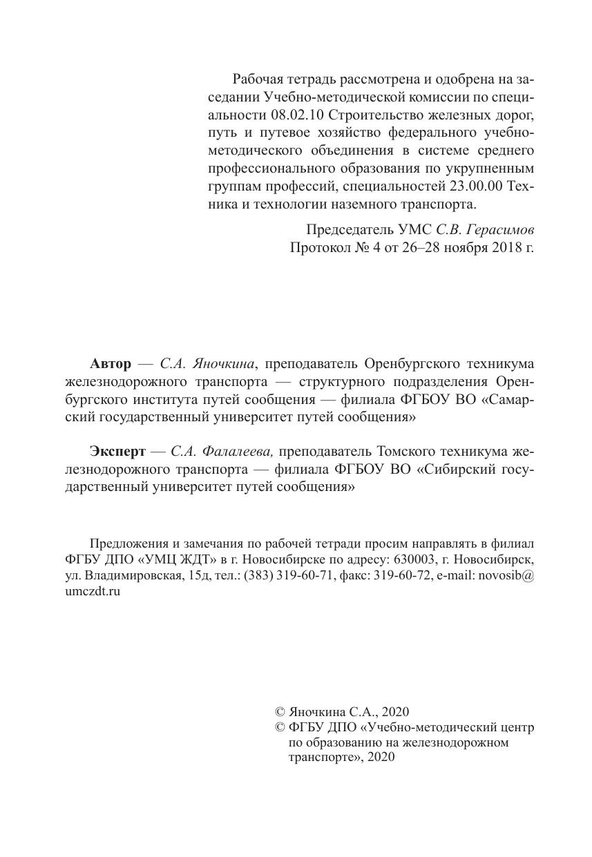Яночкина, С.А. Рабочая тетрадь по внеаудиторной самостоятельной работе по дисциплине ОП.06 Общий курс железных дорог : методическое пособие / С. А. Яночкина. — Москва : ФГБУ ДПО «Учебно методический центр по образованию на железнодорожном транспорте», 2020. — 56 с. — Текст : электронный // УМЦ ЖДТ : электронная библиотека. — URL: https://umczdt.ru/books/1257/239519/ (дата обращения 15.04.2026). — Режим доступа: по подписке.