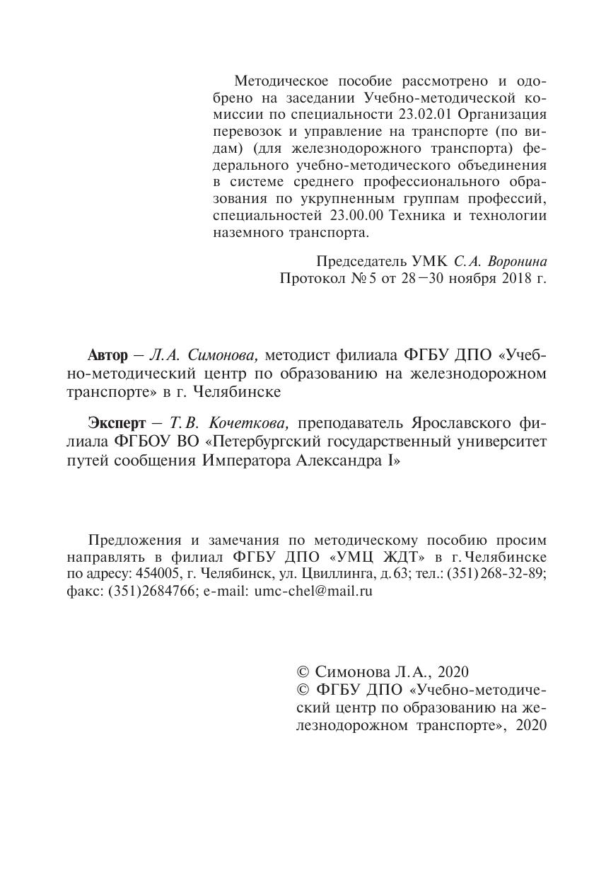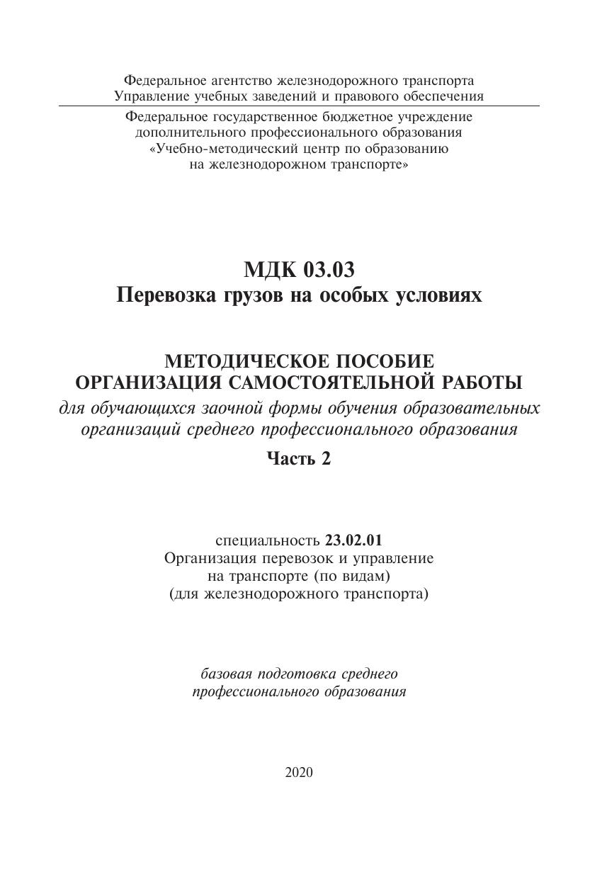 Симонова, Л.А. Методическое пособие Организация самостоятельной работы для обучающихся заочной формы обучения образовательных организаций среднего профессионального образования МДК 03.03 Перевозка грузов на особых условиях, ч.2 : методическое пособие / Л. А. Симонова. — Москва : ФГБУ ДПО «Учебно методический центр по образованию на железнодорожном транспорте», 2020. — 68 с. — Текст : электронный // УМЦ ЖДТ : электронная библиотека. — URL: https://umczdt.ru/books/1258/239502/ (дата обращения 21.01.2026). — Режим доступа: по подписке.