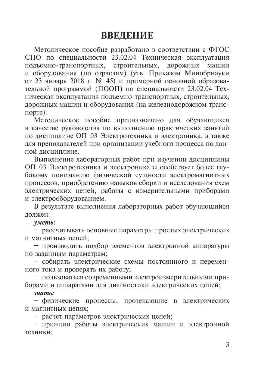 Методическое пособие по проведению лабораторных работ ОП 03 Электротехника и электроника