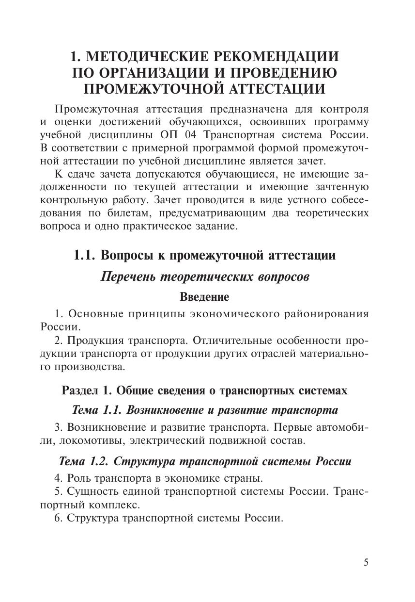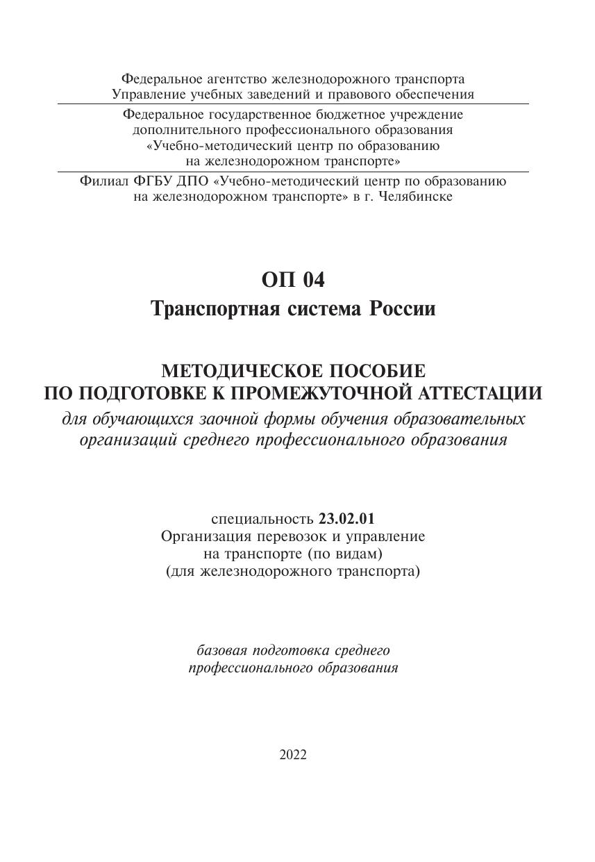 Методическое пособие по подготовке к промежуточной аттестации для обучающихся заочной формы обучения образовательных организаций среднего профессионального образования ОП 04 Транспортная система России