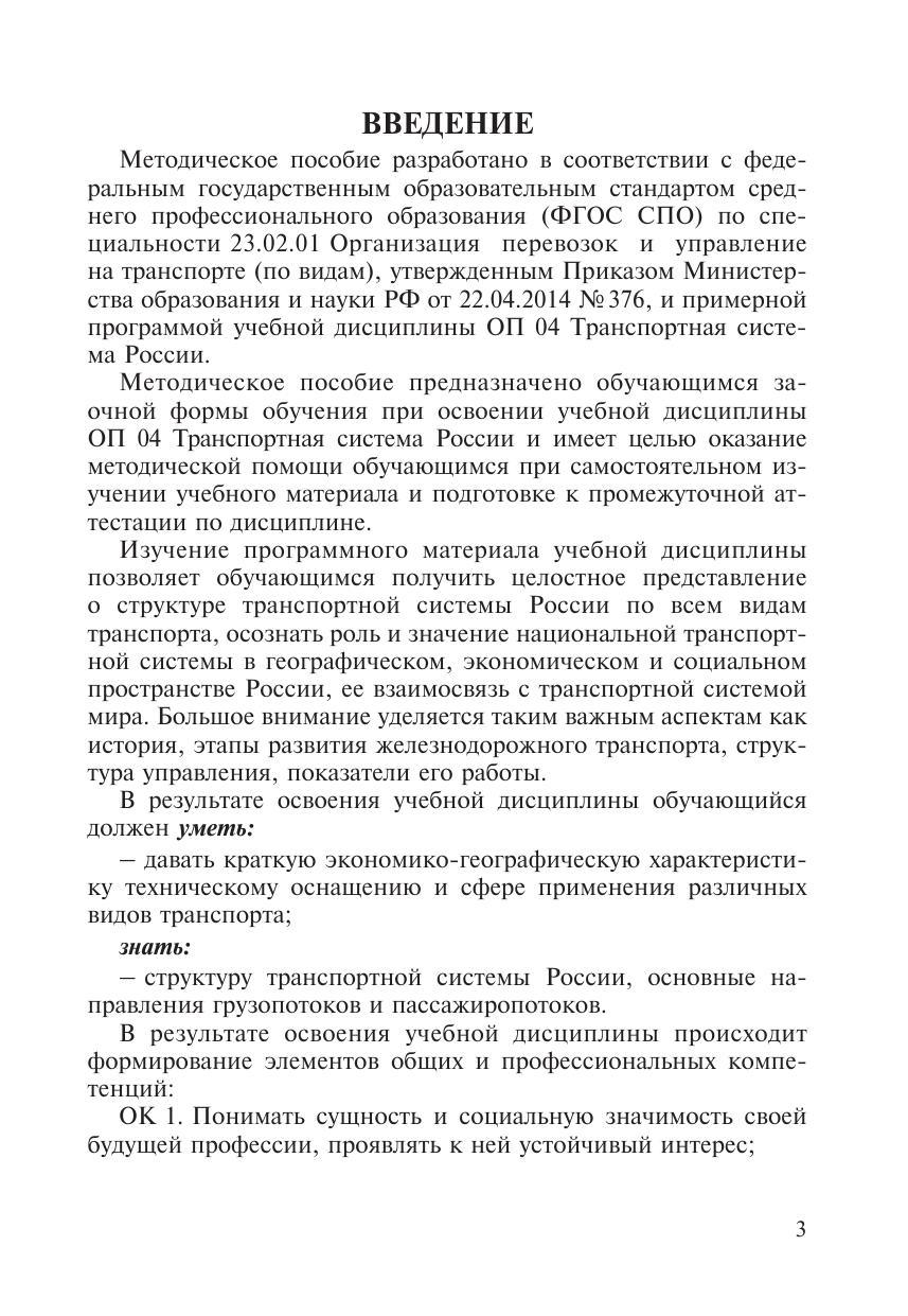 Методическое пособие разработано в соответствии с ФГОС СПО по специальности 23.02.01 Организация перевозок и управление на транспорте и ПП ОП 04 Транспортная система России. Предназначено обучающимся заочной формы обучения для оказания помощи при самостоятельном изучении учебного материала и подготовке к промежуточной аттестации.
