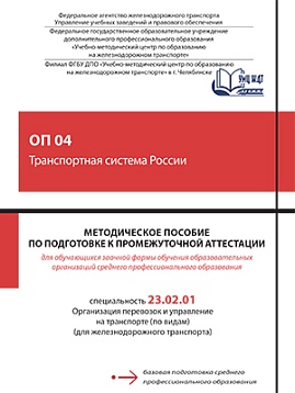 Скачкова, Н.И. Методическое пособие по подготовке к промежуточной аттестации для обучающихся заочной формы обучения образовательных организаций среднего профессионального образования ОП 04 Транспортная система России : / Н. И. Скачкова. — Москва : УМЦ ЖДТ, 2022. — 80 с. — Текст : электронный // УМЦ ЖДТ : электронная библиотека. — URL: https://umczdt.ru/books/1258/260605/ (дата обращения 20.04.2026). — Режим доступа: по подписке.
