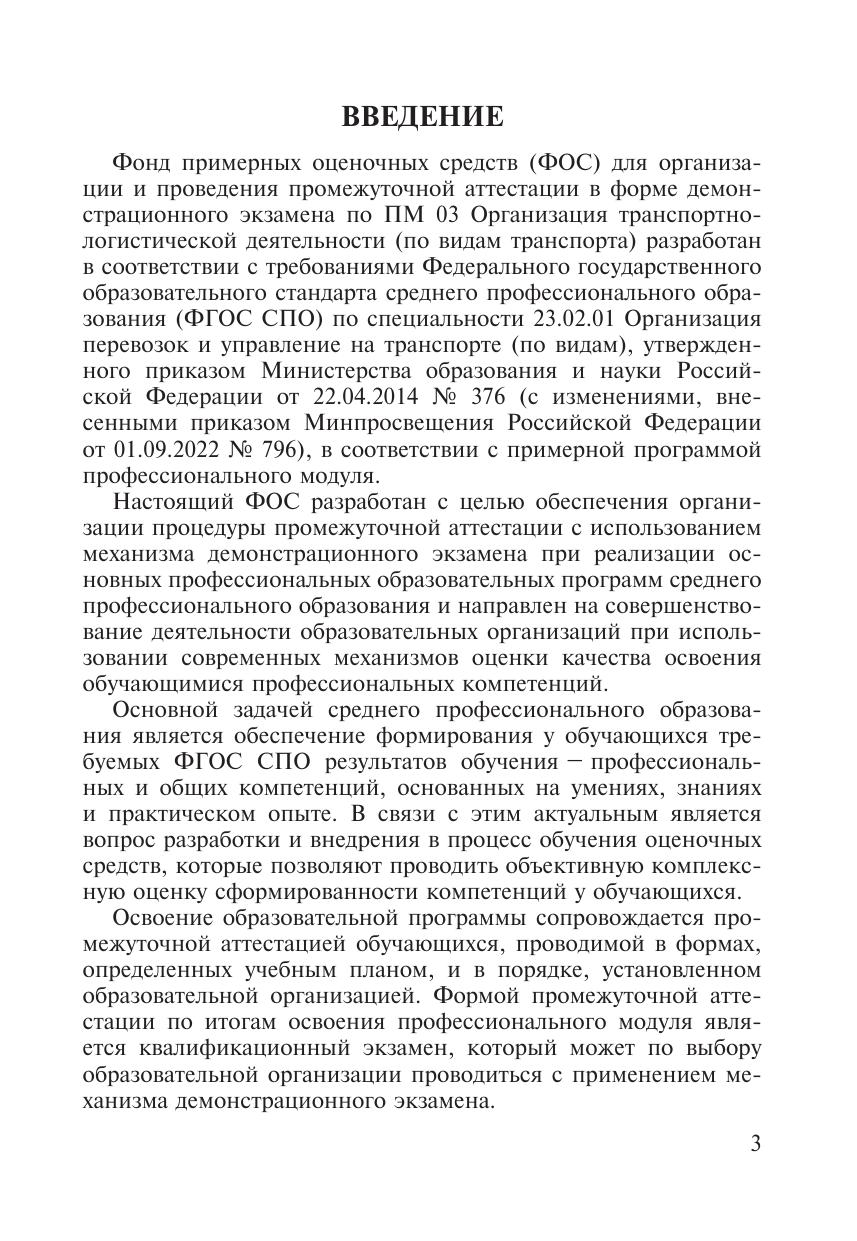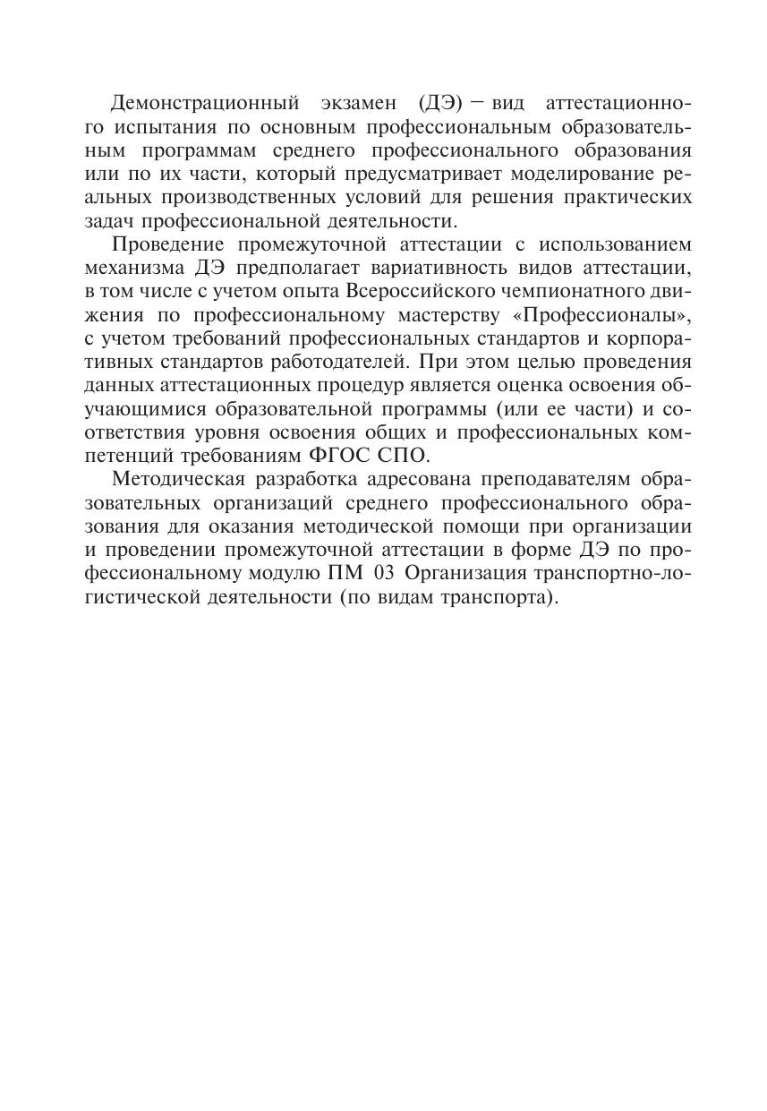 ФОС разработан на основе ФГОС СПО по специальности 23.02.01 Организация перевозок и управление на транспорте и ПП ПМ 03 Организация транспортно-логистической деятельности для оказания помощи руководителям и преподавателям СПО при организации и проведении ПА в форме ДЭ.