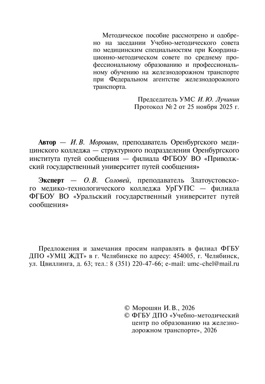 Морошян, И.В. Методическое пособие по проведению практических занятий ОП 01 Анатомия и физиология человека. Часть 2 : методическое пособие / И. В. Морошян. — Москва : УМЦ ЖДТ, 2026. — 144 с. — Текст : электронный // УМЦ ЖДТ : электронная библиотека. — URL: https://umczdt.ru/books/1261/300646/ (дата обращения 29.04.2026). — Режим доступа: по подписке.