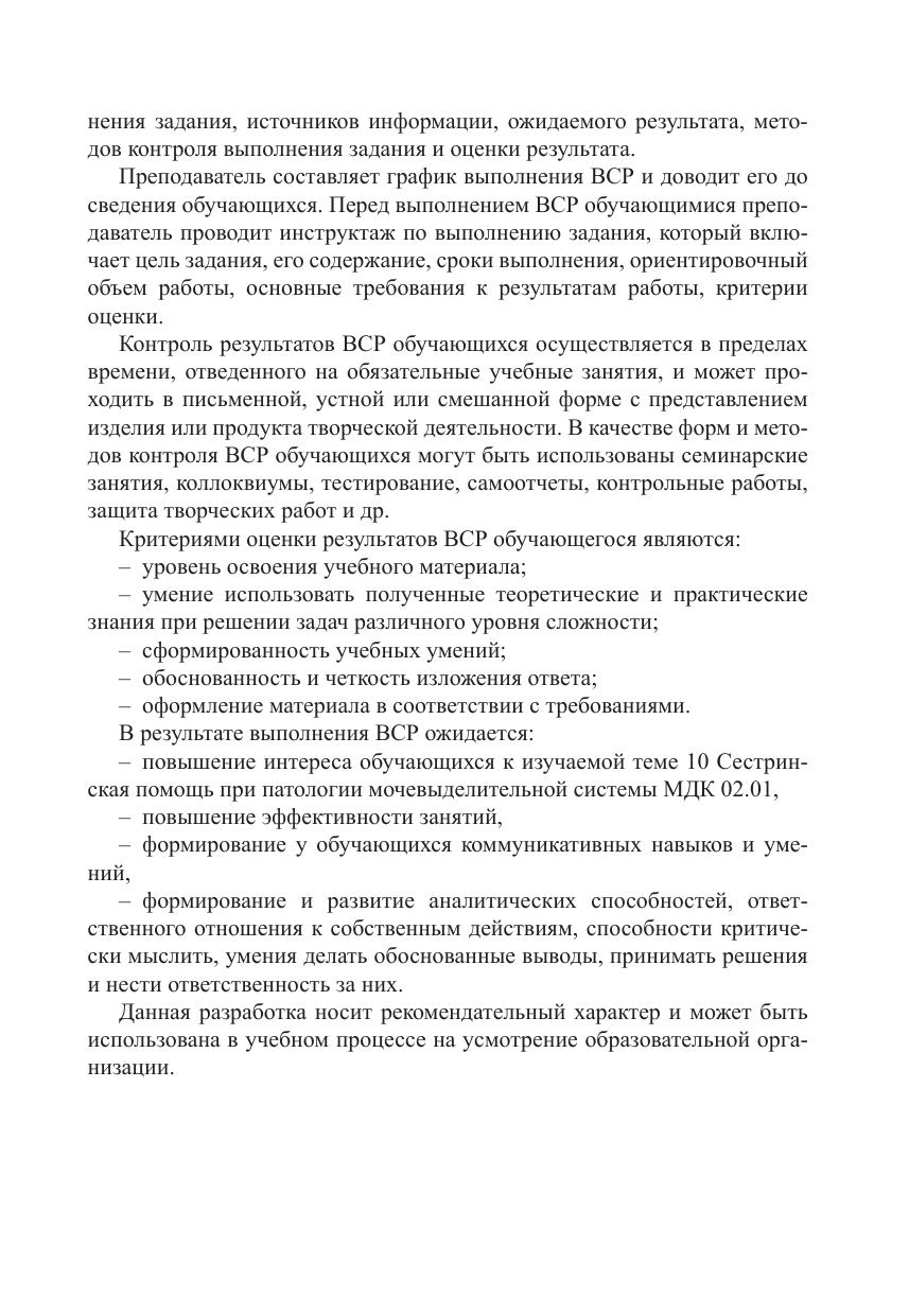 МДК 02.01 Сестринский уход при различных заболеваниях и состояниях (Сестринск ая помощь при нарушениях здоровья) (тема 10). МП "Организация самостоятельной работы"