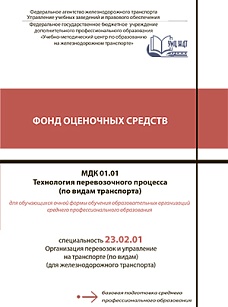 Фонд оценочных средств (ФОС) предназначен для проверки результатов освоения программы профессионального модуля ПМ 01 Организация перевозочного процесса (по видам транспорта) МДК 01.01 Технология перевозочного процесса (по видам транспорта) по специальности 23.02.01 Организация перевозок и управление на транспорте (по видам) (для железнодорожного транспорта) и включает оценочные материалы для проведения текущего контроля и промежуточной аттестации.