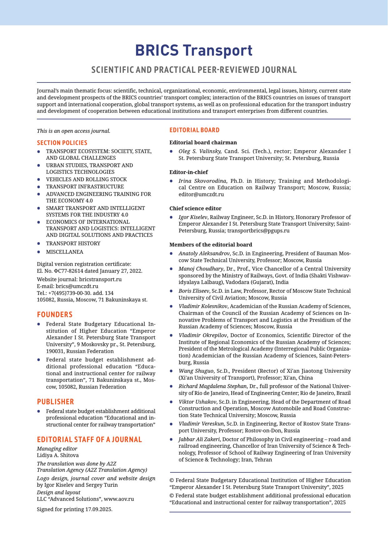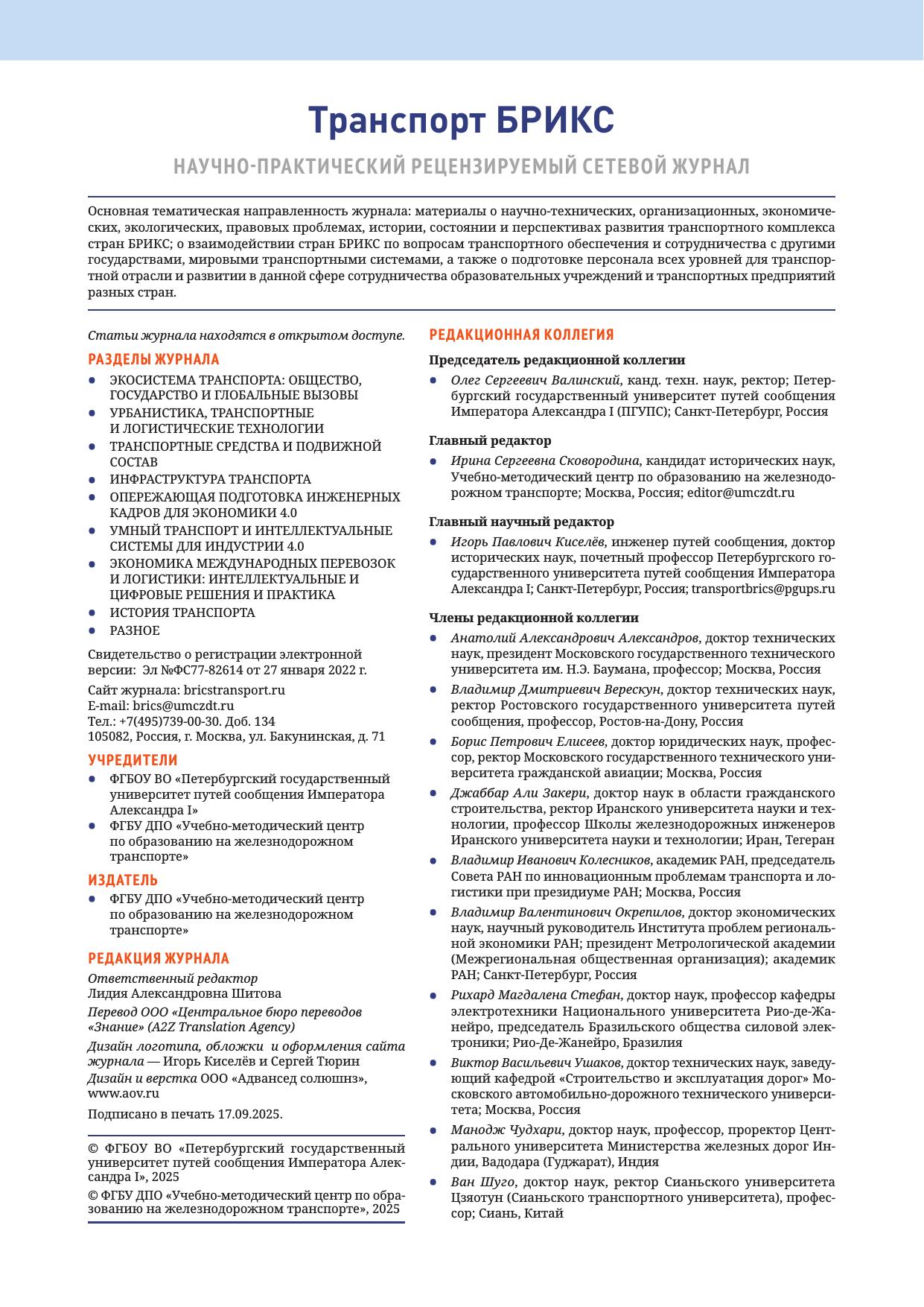 Транспорт БРИКС. 2025. Том 4. Выпуск 3