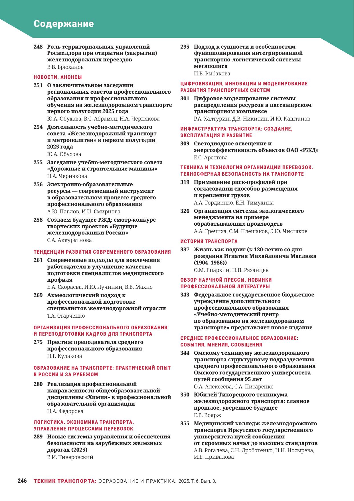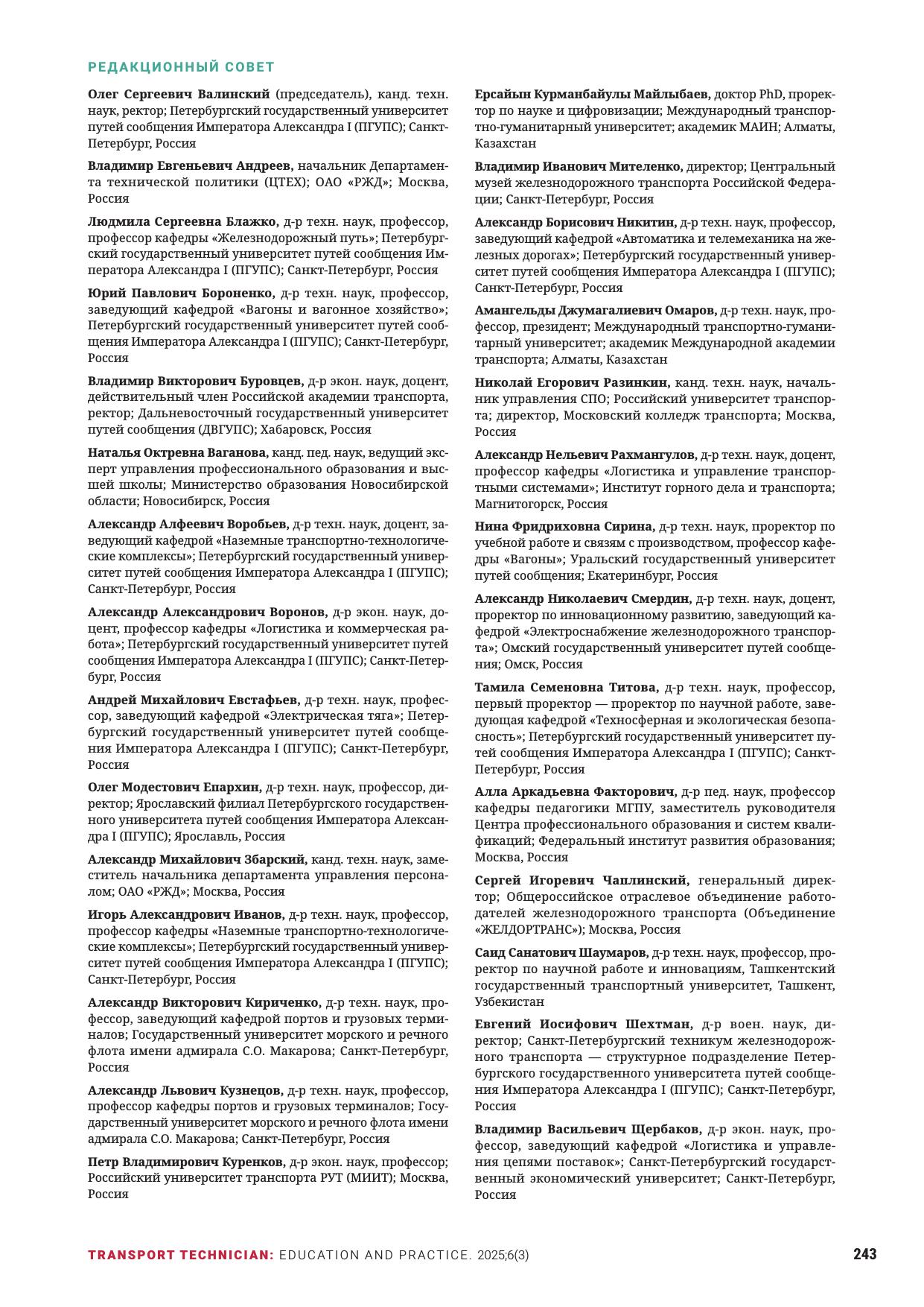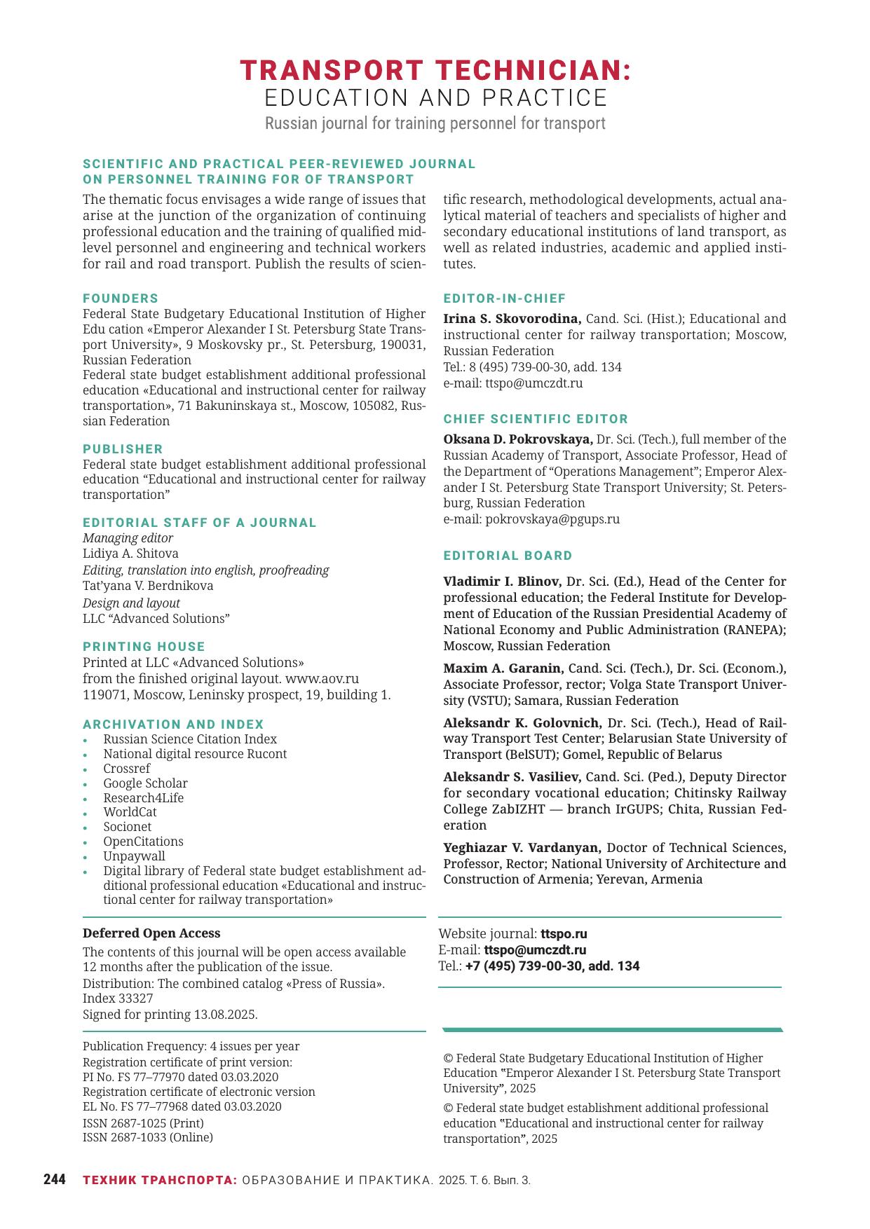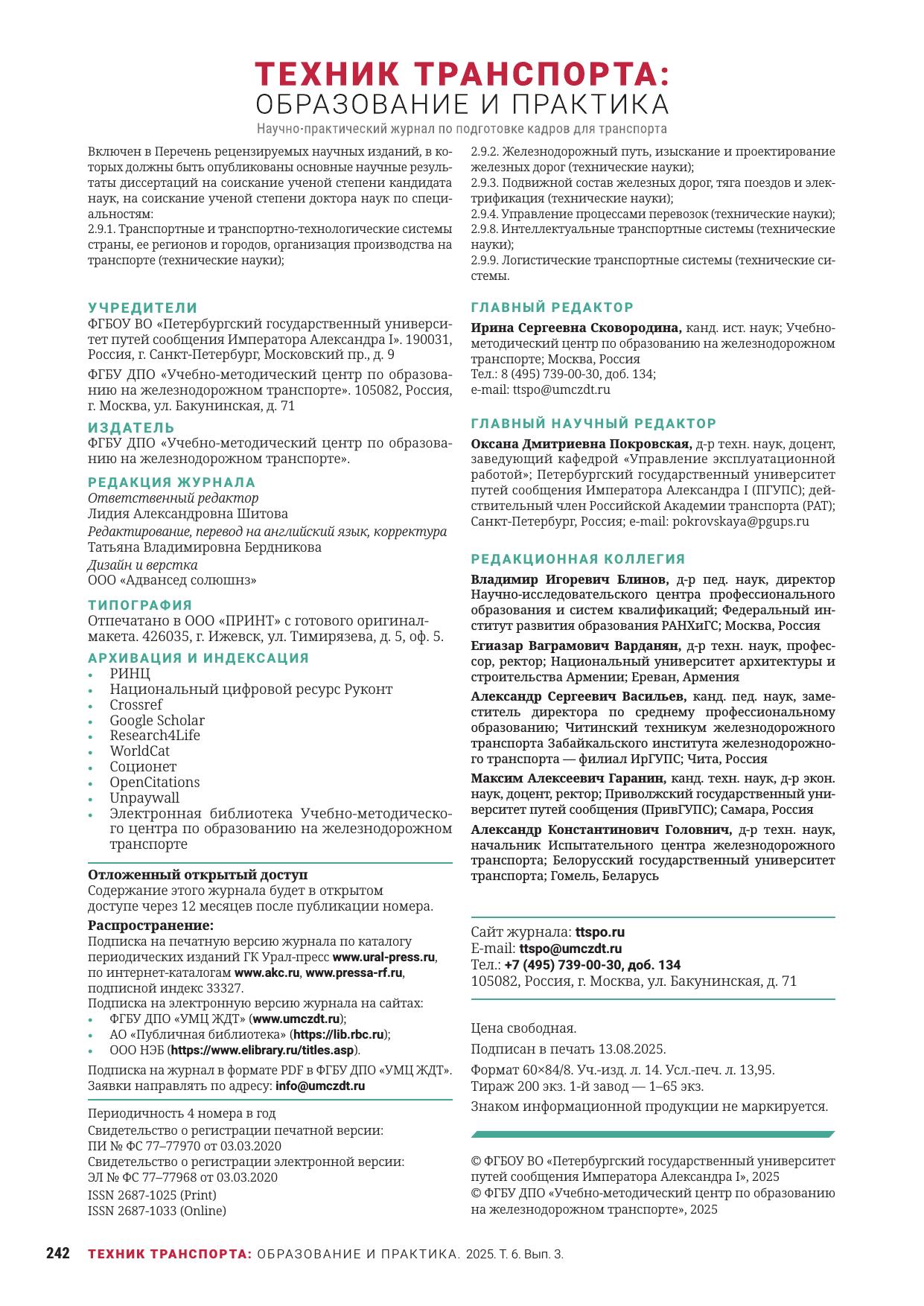 Техник транспорта: образование и практика. 2025. Том 6. Выпуск 3