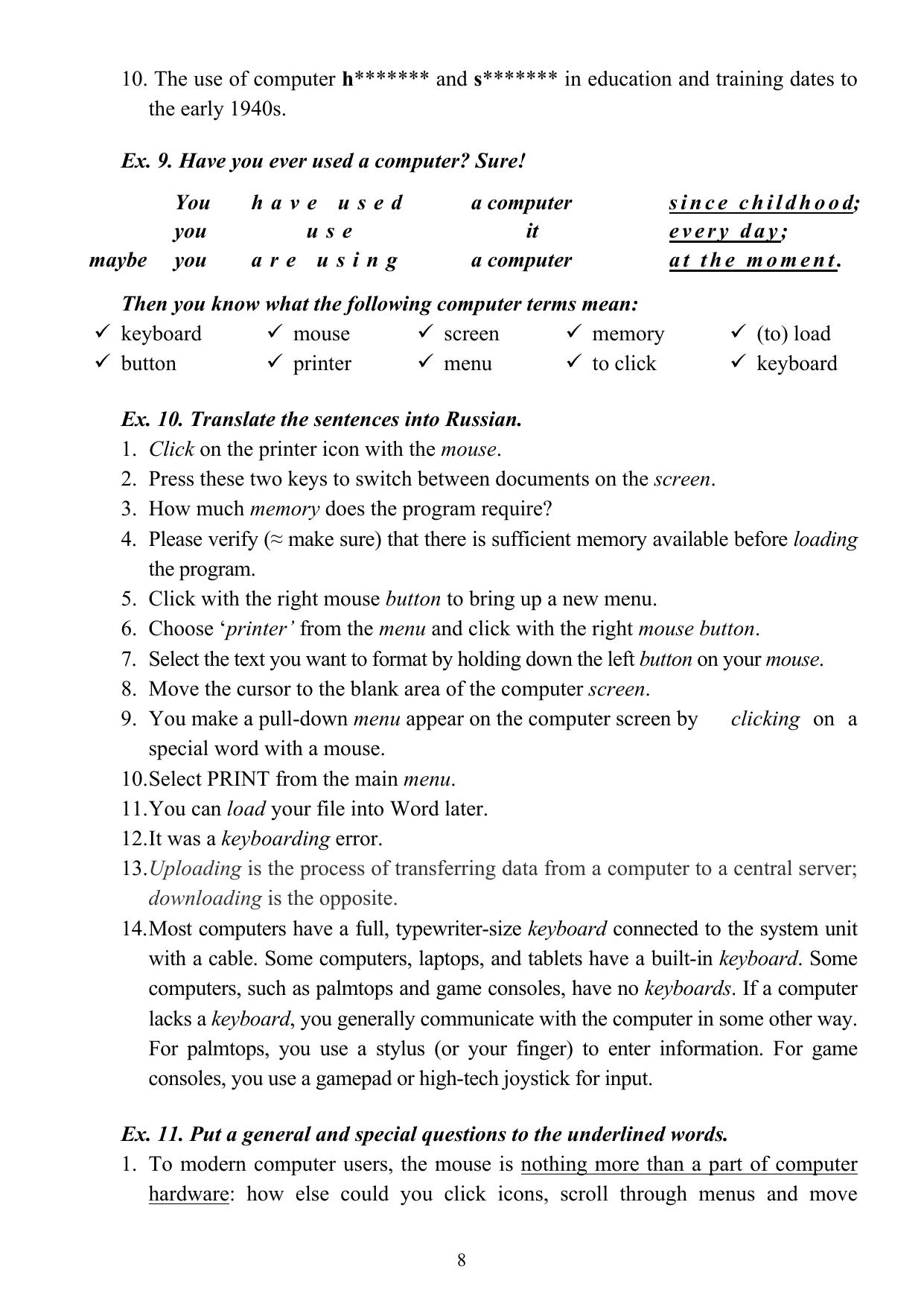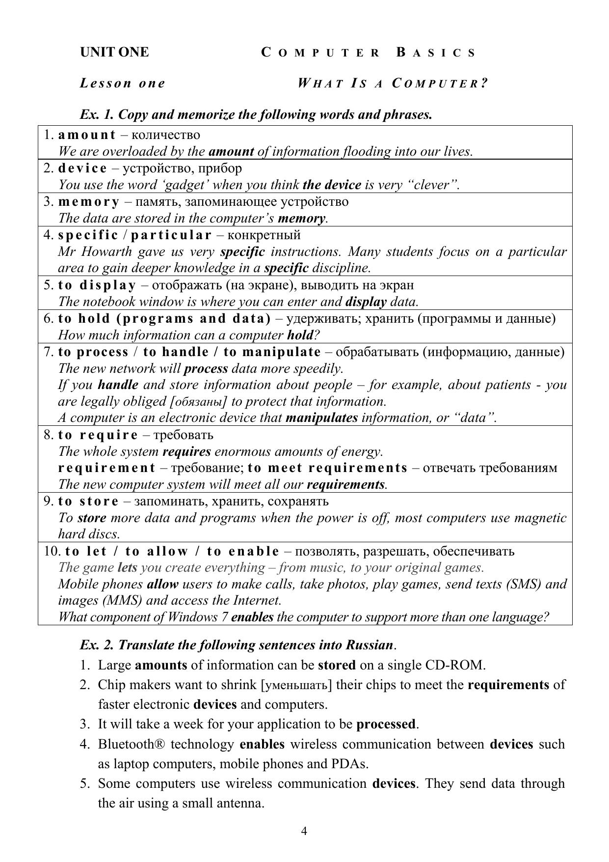 Согласно Федеральному государственному  бщеобразовательному стандарту третьего поколения учебно-методическое пособие призвано выработать компетенции, формируемые в результате освоения дисциплины «Иностранный язык», – знать профессиональную лексику на английском языке, переводить общие и профессиональные тексты, владеть основными коммуникативными моделями, обеспечивающими профессиональное и бытовое общение. Пособие составлено в соответствии с требованиями программы обучения иностранному языку студентов  неязыковых специальностей, предполагающей профессионально ориентированную  направленность учебного процесса. Для студентов 1–2 курсов специальностей 220100.62 Системный анализ и управление; 221000.62 Мехатроника и робототехника; 230100.62 Информатика и вычислительная техника; 230400.62 Информационные системы и технологии.