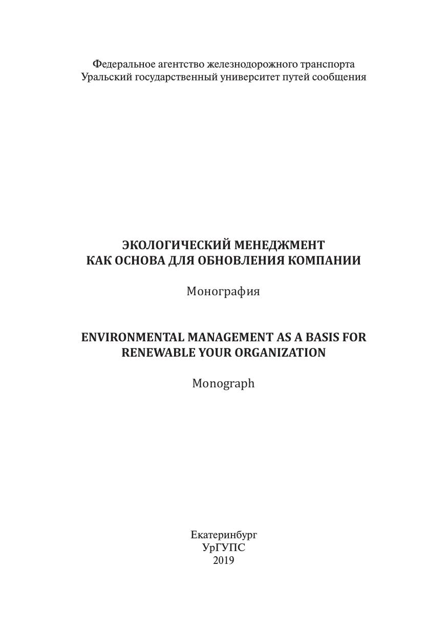 Морозова, Е.Н. Экологический менеджмент как основа для обновления компании : монография / В. А. Антропов, М. А. Журавская, И. В. Ерёмина, Е. Н. Морозова, О. В. Печура, Л. П. Синяева, Е. А. Герасимова, Ю. А. Холопов, О. Р. Ильясов, П. Новаковски, А. Сладковски. — Екатеринбург : УрГУПС, 2019. — 125 с. — 978-5-94614-478-0. — Текст : электронный // УМЦ ЖДТ : электронная библиотека. — URL: https://umczdt.ru/books/1306/263258/ (дата обращения 06.02.2026). — Режим доступа: по подписке.