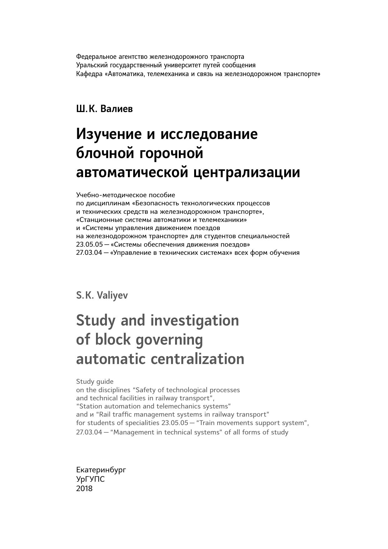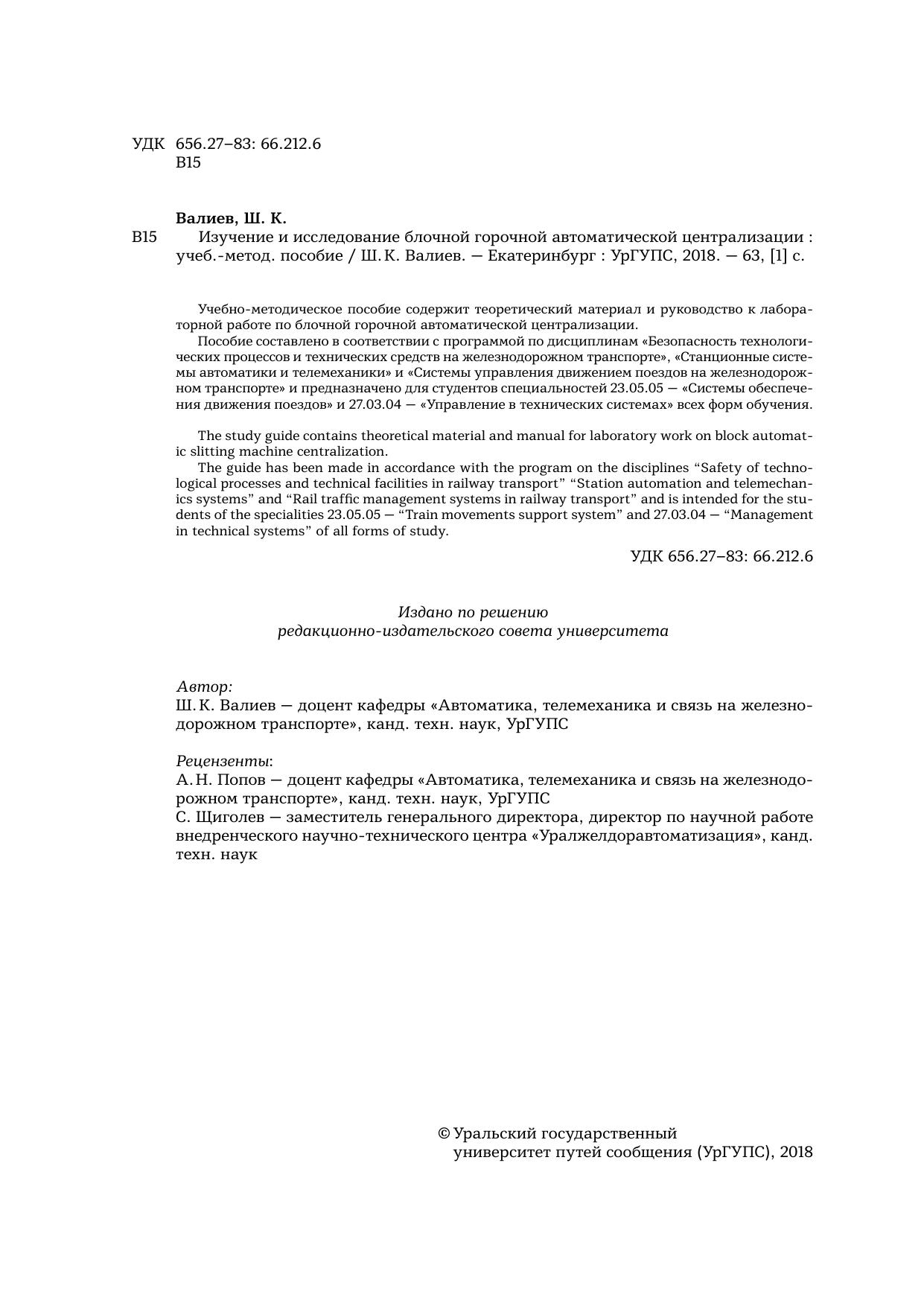 Валиев, Ш.К. Изучение и исследование блочной горочной автоматической централизации : учебно-методическое пособие / Ш. К. Валиев. — Екатеринбург : УрГУПС, 2018. — 63 с. — Текст : электронный // УМЦ ЖДТ : электронная библиотека. — URL: https://umczdt.ru/books/1306/263297/ (дата обращения 30.04.2026). — Режим доступа: по подписке.
