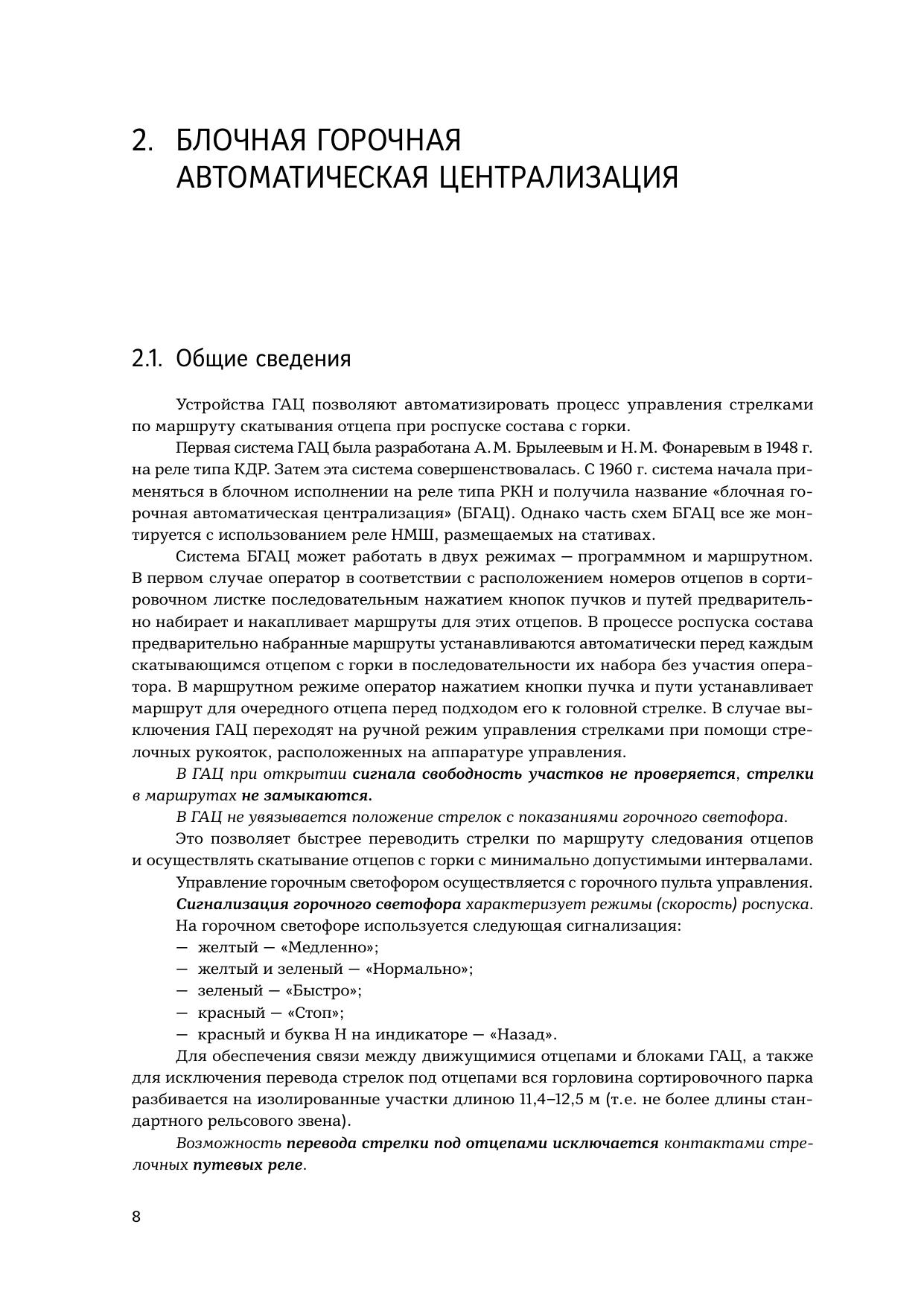 Учебно-методическое пособие содержит теоретический материал и руководство к лабораторной работе по блочной горочной автоматической централизации. Пособие составлено в соответствии с программой по дисциплинам «Безопасность технологических процессов и технических средств на железнодорожном транспорте», «Станционные системы автоматики и телемеханики» и «Системы управления движением поездов на железнодорожном транспорте» и предназначено для студентов специальностей 23.05.05 — «Системы обеспечения движения поездов» и 27.03.04 — «Управление в технических системах» всех форм обучения.