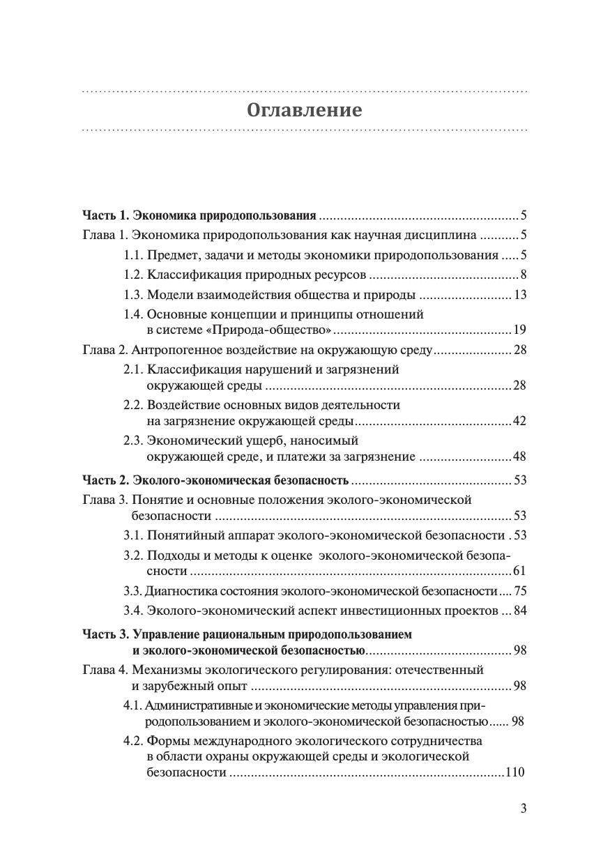 В учебном пособии рассматриваются основные понятия экономики природопользования и эколого-экономической безопасности, подходы и методический инструментарий оценки эколого-экономического состояния территории, современные концепции отношений в системе «природа-общество», вопросы экономической эффективности экологоориентированных инвестиционных проектов, методика их рейтинга, основанная на эколого-экономических критериях, административные и экономические методы управления рациональным природопользованием и эколого-экономической безопасностью. Учебное пособие формирует навыки определения диагностической картины эколого-экономической безопасности региона, развивает аналитические способности студентов по оценке экономического ущерба, наносимого окружающей среде. Пособие может использоваться для преподавания теоретической и практической частей курса и для самостоятельной подготовки студентов.