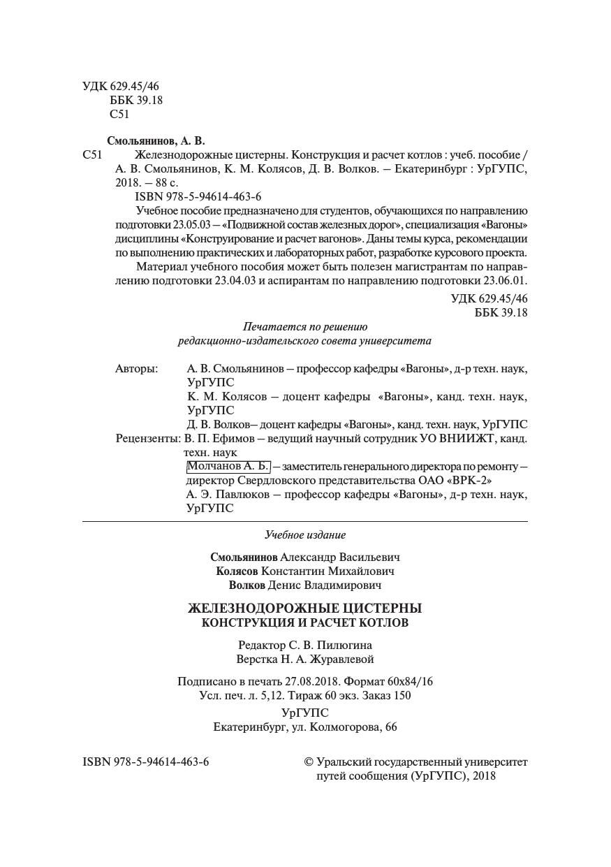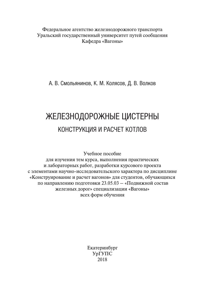 Железнодорожные цистерны. Конструкция и расчет котлов : учебное пособие / К. М. Колясов, Д. В. Волков. — Екатеринбург : УрГУПС, 2018. — 88 с. — 978-5-94614-463-6. — Текст : электронный // УМЦ ЖДТ : электронная библиотека. — URL: https://umczdt.ru/books/1306/263304/ (дата обращения 21.04.2026). — Режим доступа: по подписке.