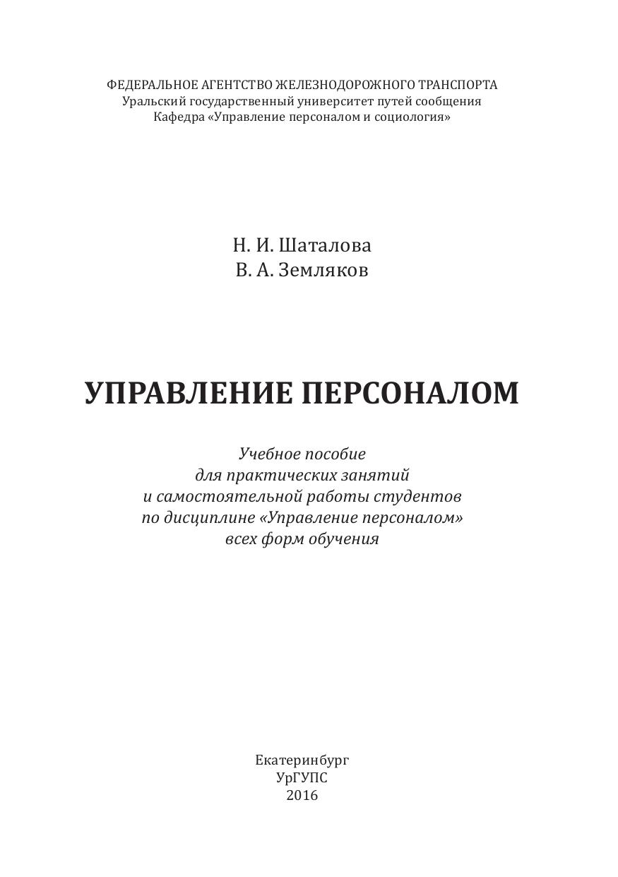Шаталова, Н.И. Управление персоналом : учебное пособие / В. А. Земляков, Н. И. Шаталова. — Екатеринбург : УрГУПС, 2016. — 211 с. — 978-5-94614-344-8. — Текст : электронный // УМЦ ЖДТ : электронная библиотека. — URL: https://umczdt.ru/books/1306/263312/ (дата обращения 08.11.2025). — Режим доступа: по подписке.