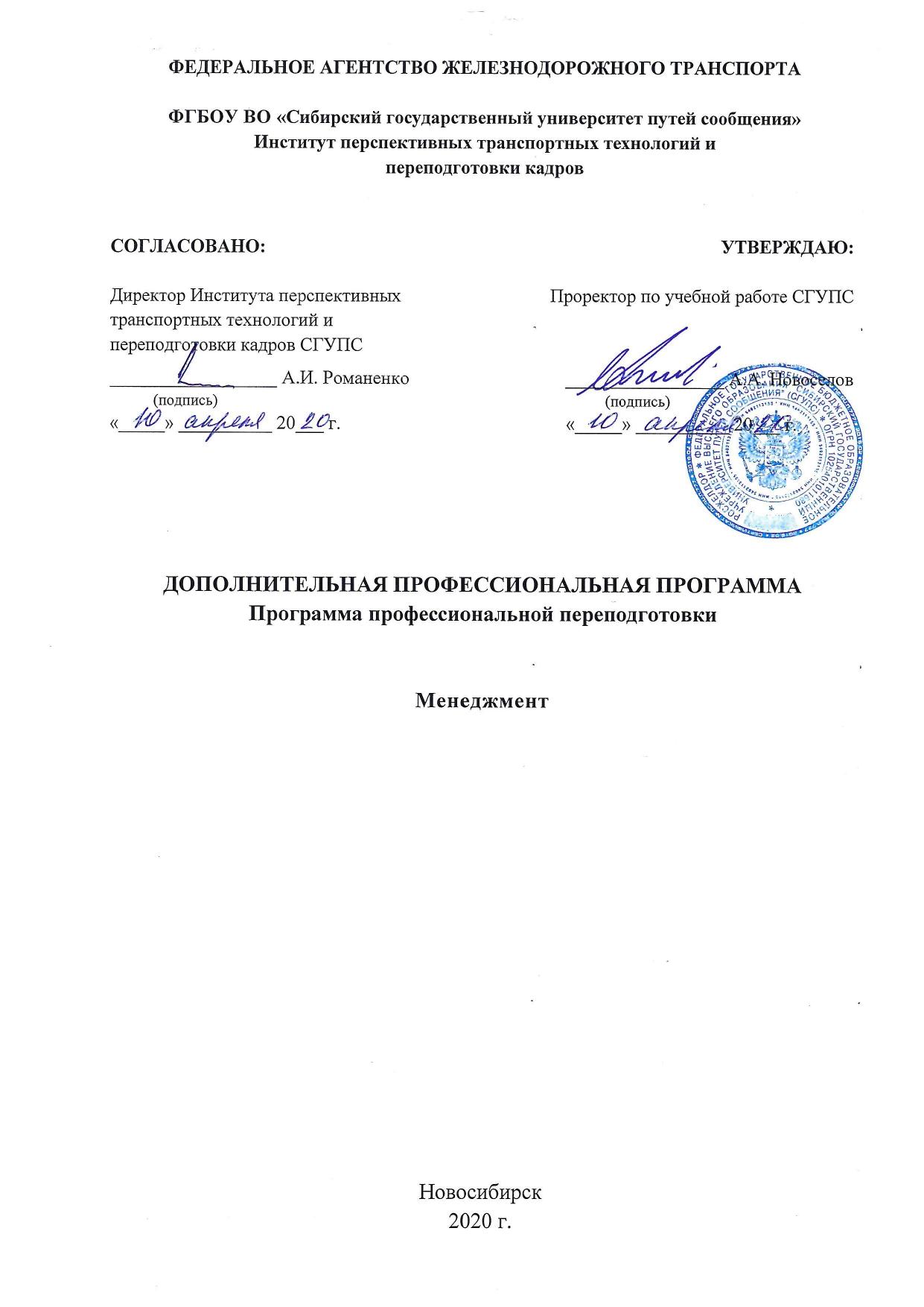 Менеджмент : программа профессиональной переподготовки / . — Новосибирск : СГУПС, 2020. — 3 с. — Текст : электронный // УМЦ ЖДТ : электронная библиотека. — URL: https://umczdt.ru/books/1308/299915/ (дата обращения 20.04.2026). — Режим доступа: по подписке.
