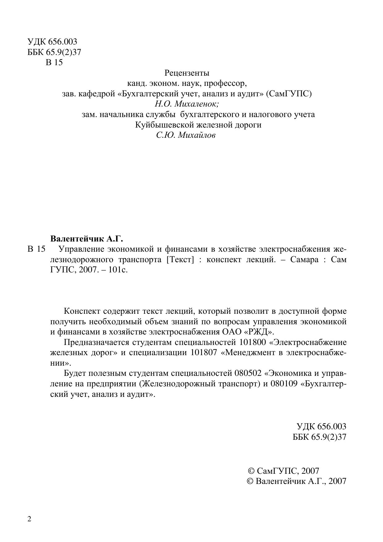 Валентейчик, А.Г. Управление экономикой и финансами в хозяйстве электроснабжения железнодорожного транспорта : конспект лекций / А. Г. Валентейчик. — Самара : СамГУПС, 2007. — 101 с. — Текст : электронный // УМЦ ЖДТ : электронная библиотека. — URL: https://umczdt.ru/books/1311/263232/ (дата обращения 11.03.2026). — Режим доступа: по подписке.