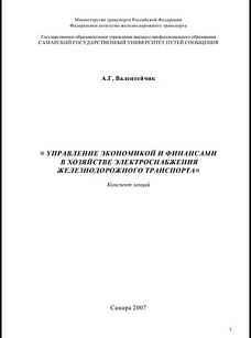 Управление экономикой и финансами в хозяйстве электроснабжения железнодорожного транспорта