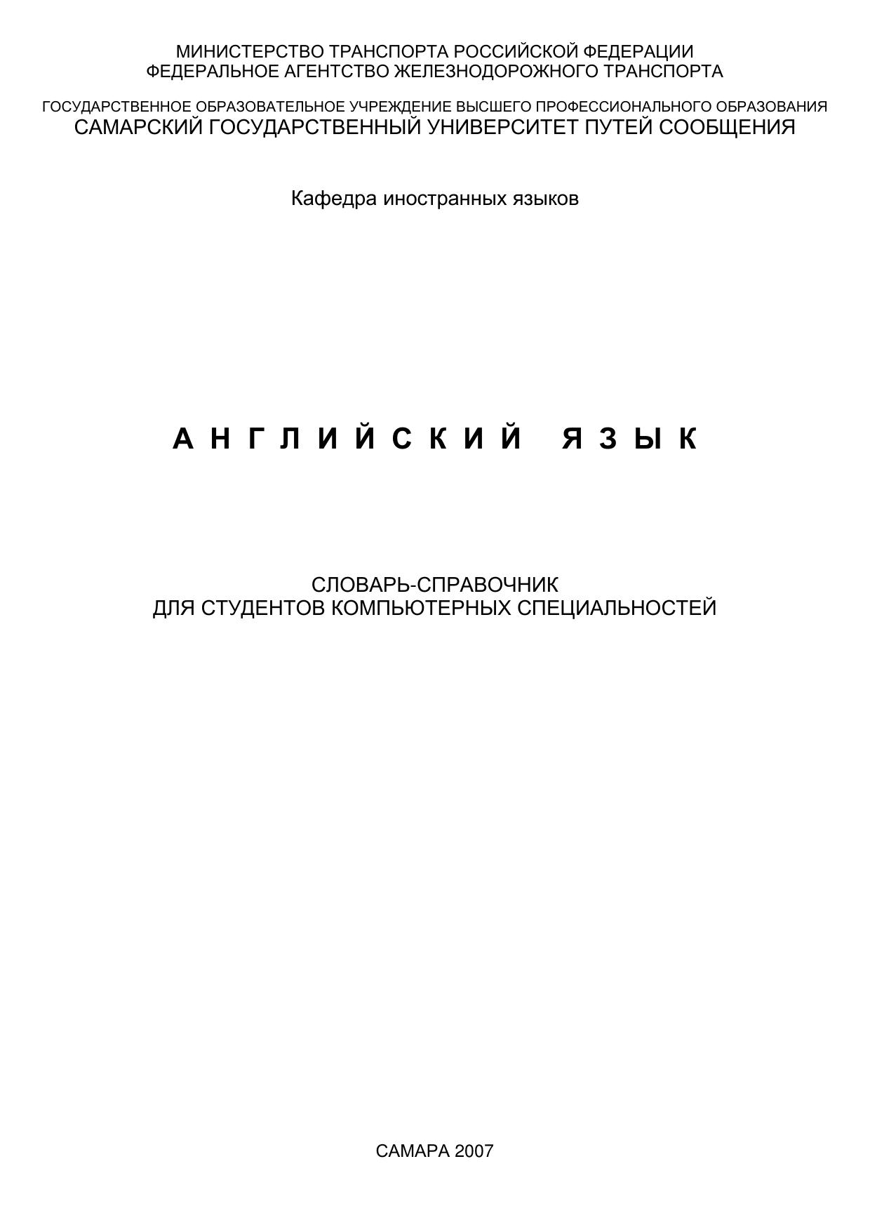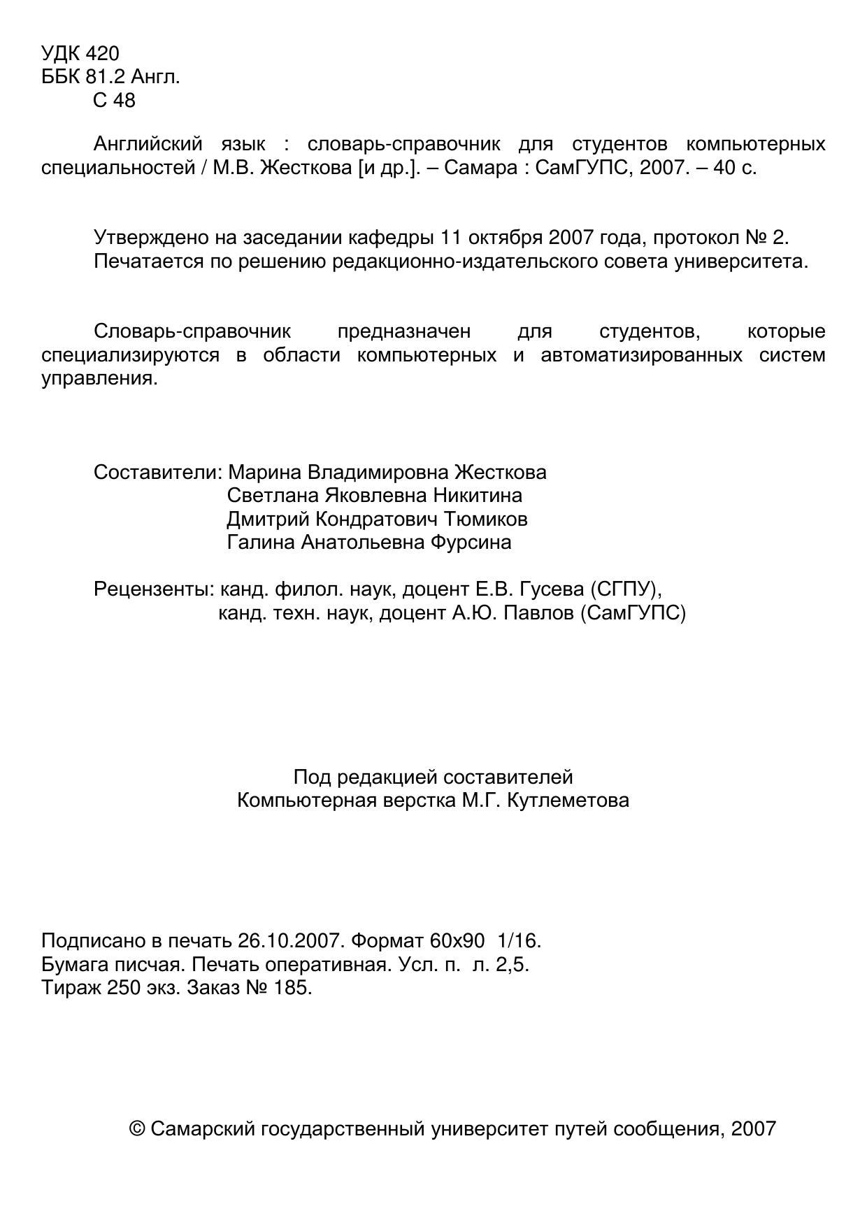 Жесткова, М.В. Английский язык : словарь / М. В. Жесткова, С. Я. Никитина, Д. К. Тюмиков, Г. А. Фурсина. — Самара : СамГУПС, 2007. — 40 с. — Текст : электронный // УМЦ ЖДТ : электронная библиотека. — URL: https://umczdt.ru/books/1311/263509/ (дата обращения 20.04.2026). — Режим доступа: по подписке.