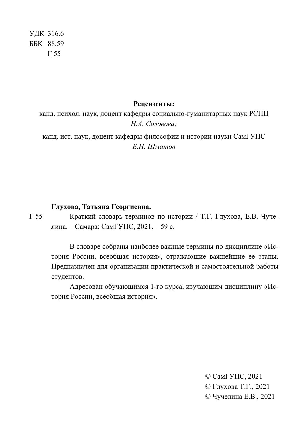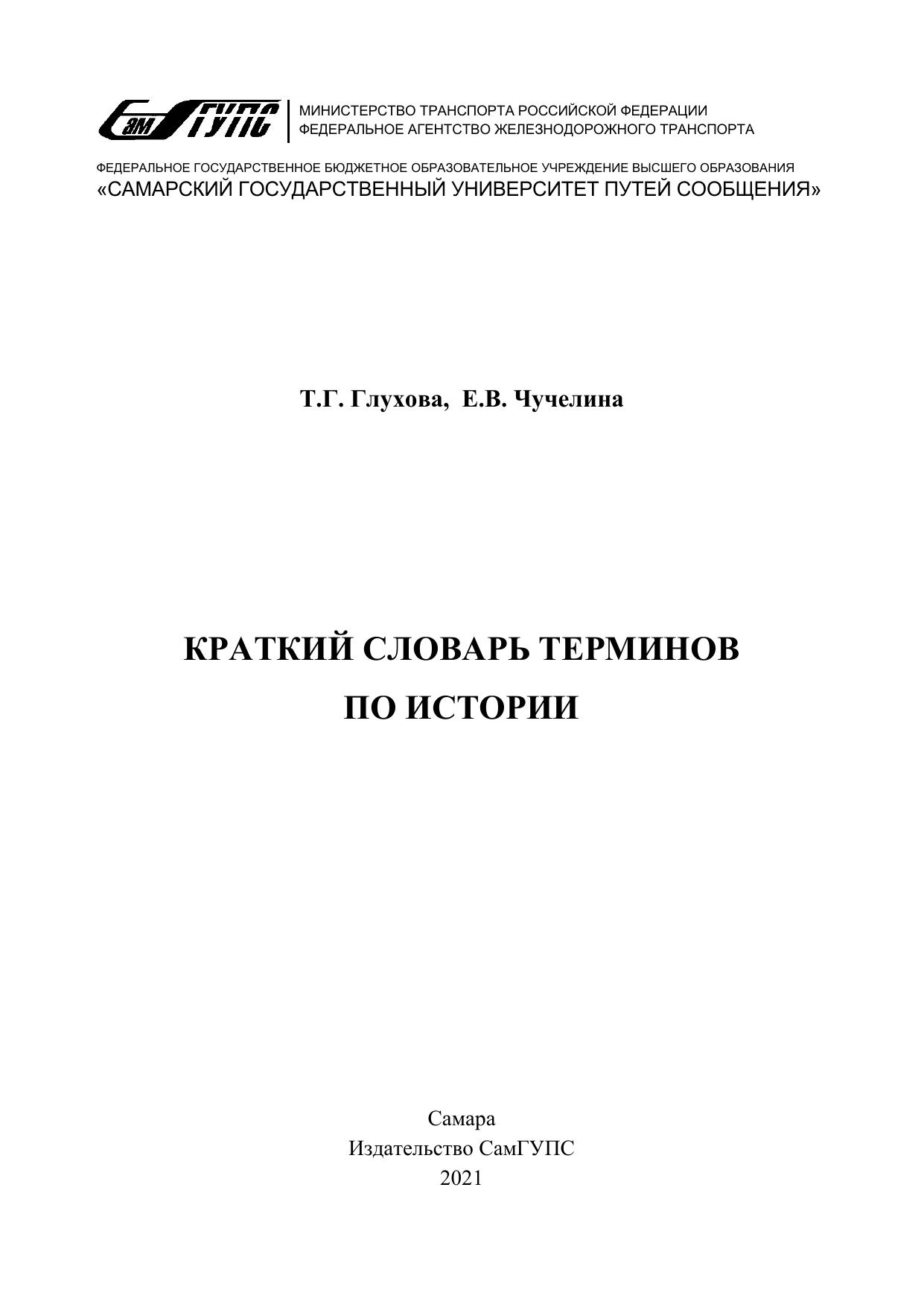 Глухова, Т.Г. Краткий словарь терминов по истории : словарь / Т. Г. Глухова, Е. В. Чучелина. — Самара : СамГУПС, 2021. — 59 с. — Текст : электронный // УМЦ ЖДТ : электронная библиотека. — URL: https://umczdt.ru/books/1311/263517/ (дата обращения 20.04.2026). — Режим доступа: по подписке.