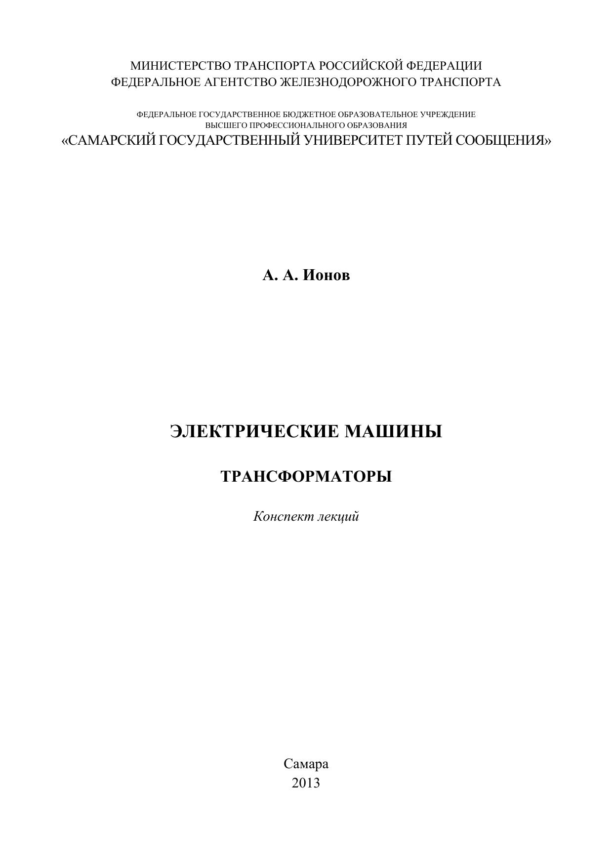 Ионов, А.А. Электрические машины : конспект лекций / А. А. Ионов. — Самара : СамГУПС, 2013. — 119 с. — Текст : электронный // УМЦ ЖДТ : электронная библиотека. — URL: https://umczdt.ru/books/1311/263598/ (дата обращения 10.11.2025). — Режим доступа: по подписке.
