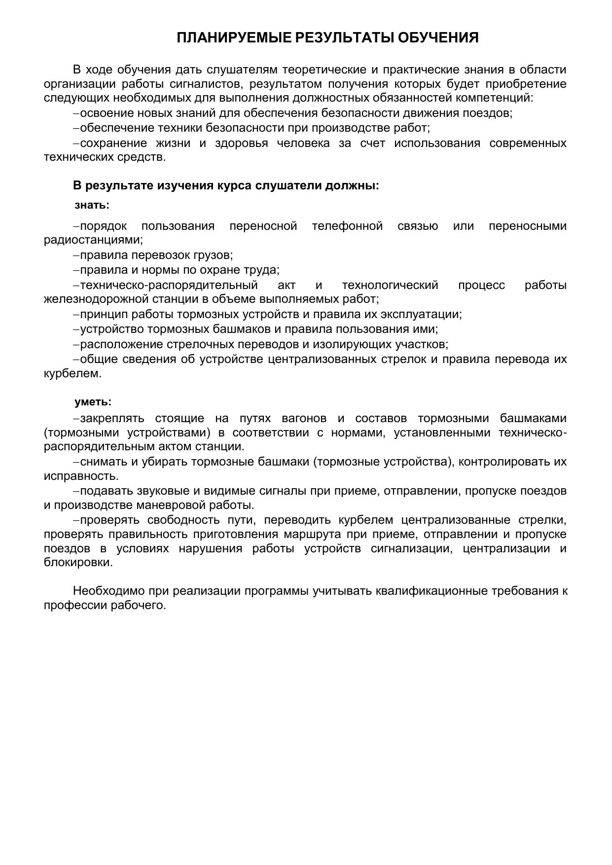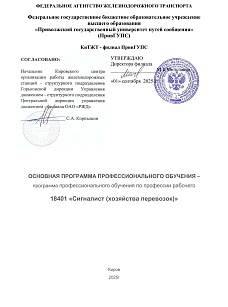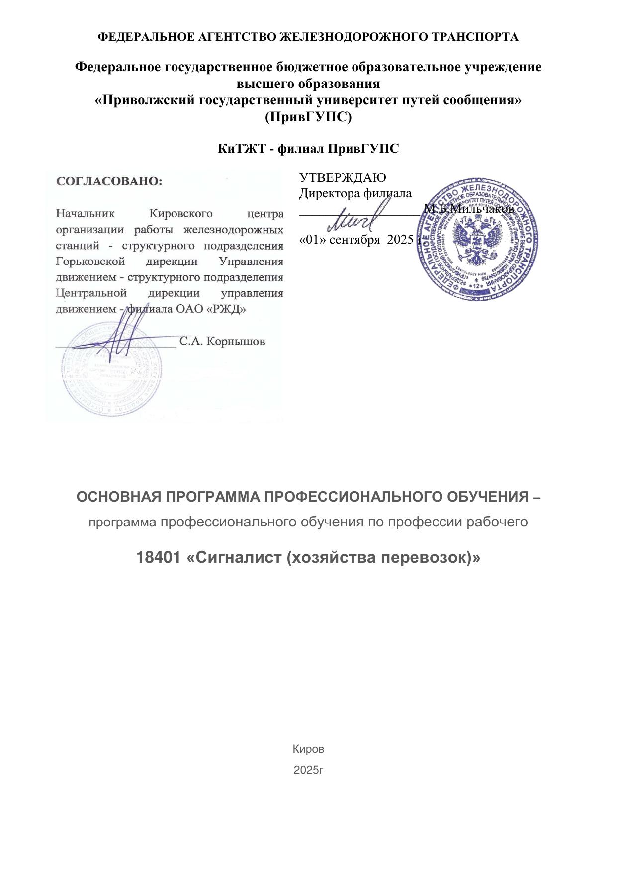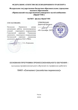 Сигналист (хозяйства перевозок) : программа профессиональной подготовки / . — Киров : КиТЖТ - филиал ПривГУПС, 2025. — 67 с. — Текст : электронный // УМЦ ЖДТ : электронная библиотека. — URL: https://umczdt.ru/books/1311/299846/ (дата обращения 18.04.2026). — Режим доступа: по подписке.