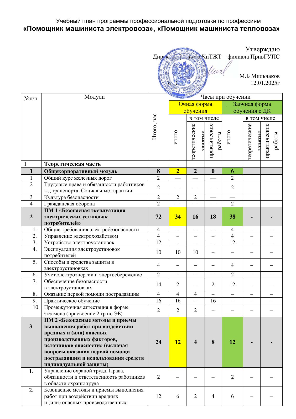 Помощник машиниста тепловоза, электровоза : программа профессиональной подготовки / . — Киров : КиТЖТ - филиал ПривГУПС, 2025. — 13 с. — Текст : электронный // УМЦ ЖДТ : электронная библиотека. — URL: https://umczdt.ru/books/1311/299853/ (дата обращения 18.04.2026). — Режим доступа: по подписке.
