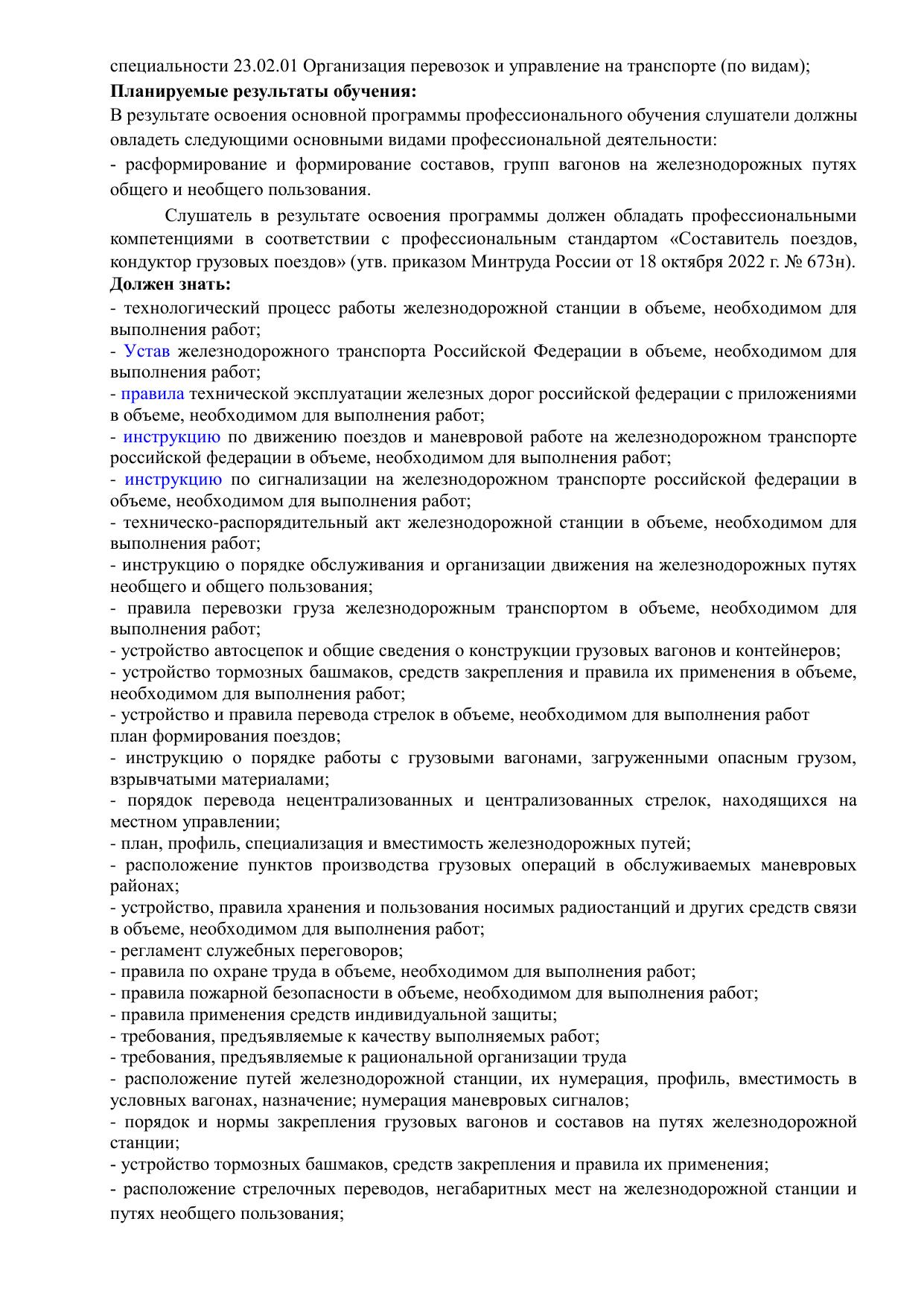 Составитель поездов : программа профессиональной подготовки / . — Казань : КТЖТ- филиал ПривГУПС, 2025. — 37 с. — Текст : электронный // УМЦ ЖДТ : электронная библиотека. — URL: https://umczdt.ru/books/1311/299862/ (дата обращения 18.04.2026). — Режим доступа: по подписке.