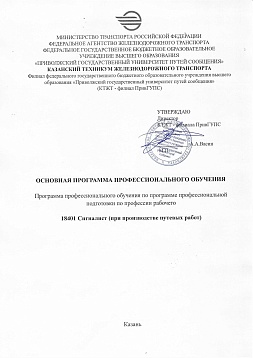 Сигналист при производстве путевых работ : программа профессиональной подготовки / . — Казань : КТЖТ- филиал ПривГУПС, 2025. — 21 с. — Текст : электронный // УМЦ ЖДТ : электронная библиотека. — URL: https://umczdt.ru/books/1311/299863/ (дата обращения 18.04.2026). — Режим доступа: по подписке.