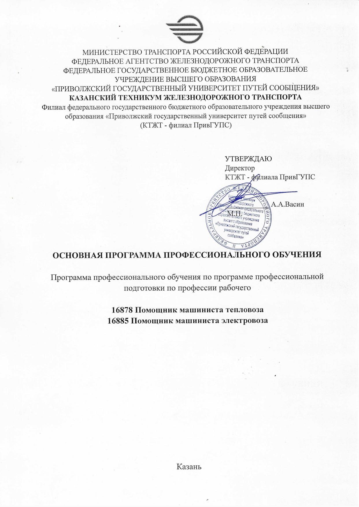 Помощник машиниста тепловоза, электровоза : программа профессиональной подготовки / . — Казань : КТЖТ- филиал ПривГУПС, 2025. — 27 с. — Текст : электронный // УМЦ ЖДТ : электронная библиотека. — URL: https://umczdt.ru/books/1311/299867/ (дата обращения 18.04.2026). — Режим доступа: по подписке.