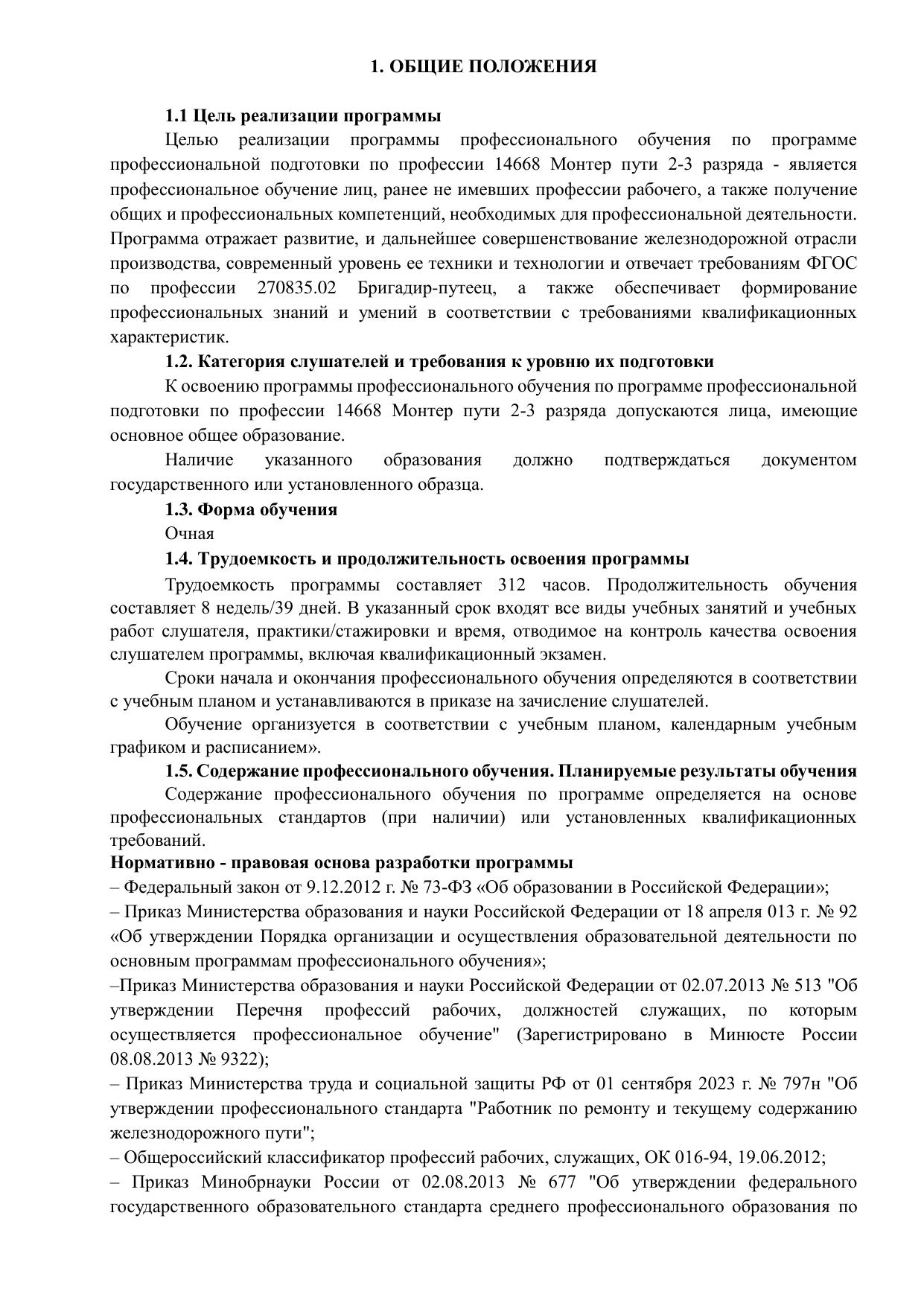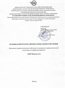Монтер пути : программа профессиональной подготовки / . — Казань : КТЖТ- филиал ПривГУПС, 2025. — 24 с. — Текст : электронный // УМЦ ЖДТ : электронная библиотека. — URL: https://umczdt.ru/books/1311/299868/ (дата обращения 18.04.2026). — Режим доступа: по подписке.