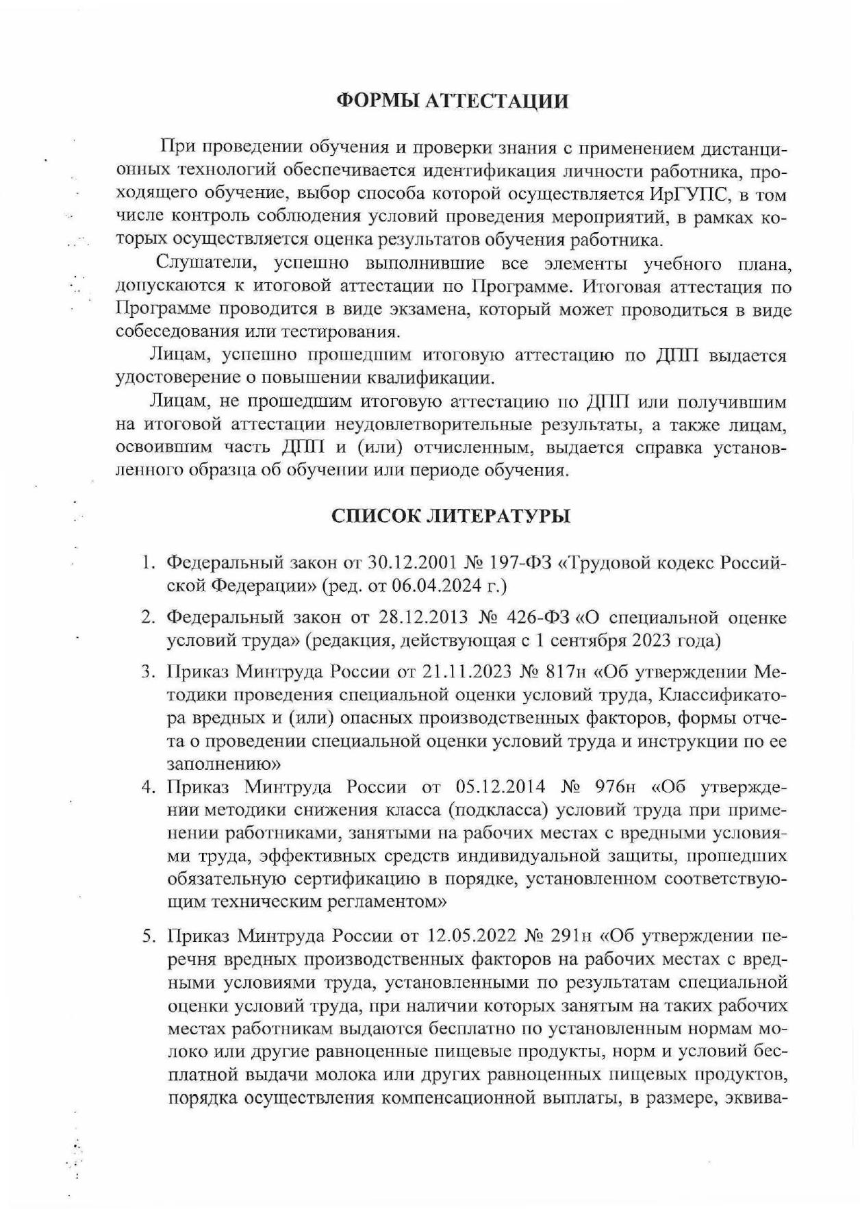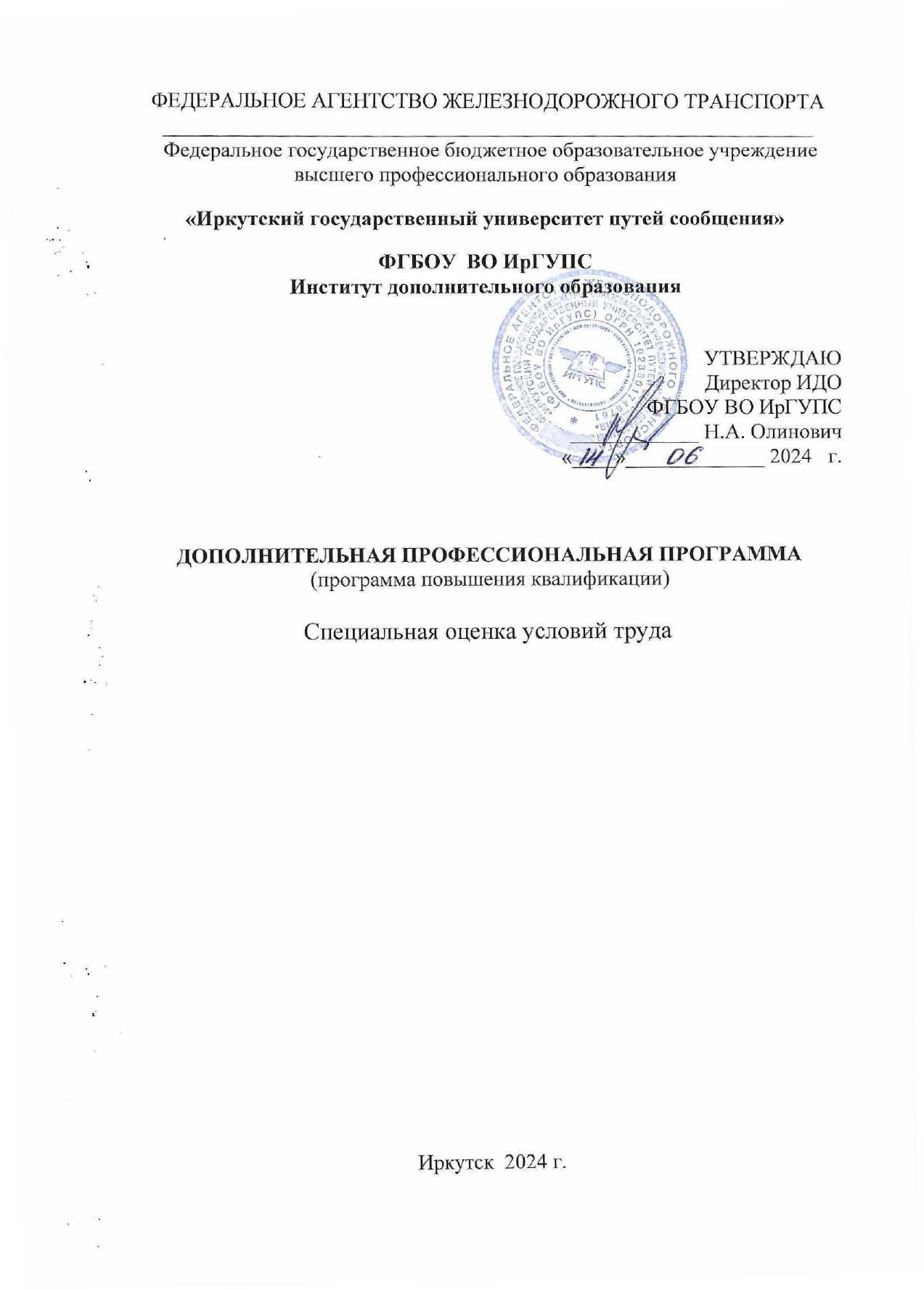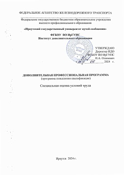 Специальная оценка условий труда : программа повышения квалификации / . — Иркутск : ИрГУПС, 2024. — 10 с. — Текст : электронный // УМЦ ЖДТ : электронная библиотека. — URL: https://umczdt.ru/books/1319/299682/ (дата обращения 17.04.2026). — Режим доступа: по подписке.