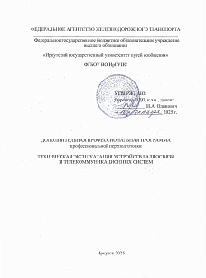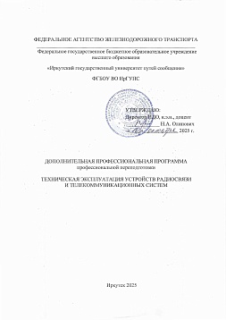 Техническая эксплуатация устройств радиосвязи и телекоммуникационных систем : программа профессиональной переподготовки / . — Иркутск : ИрГУПС, 2025. — 22 с. — Текст : электронный // УМЦ ЖДТ : электронная библиотека. — URL: https://umczdt.ru/books/1319/299699/ (дата обращения 17.04.2026). — Режим доступа: по подписке.